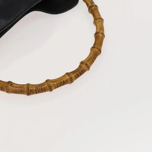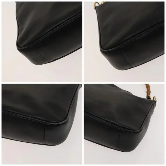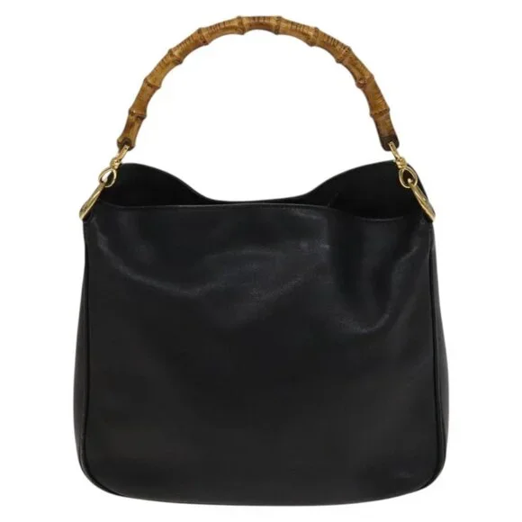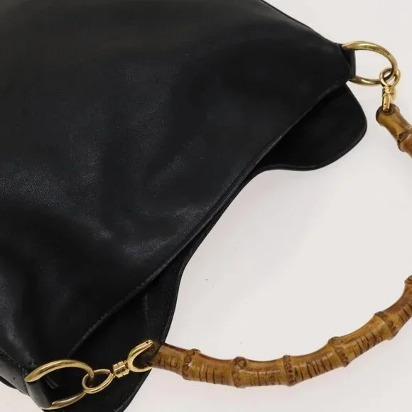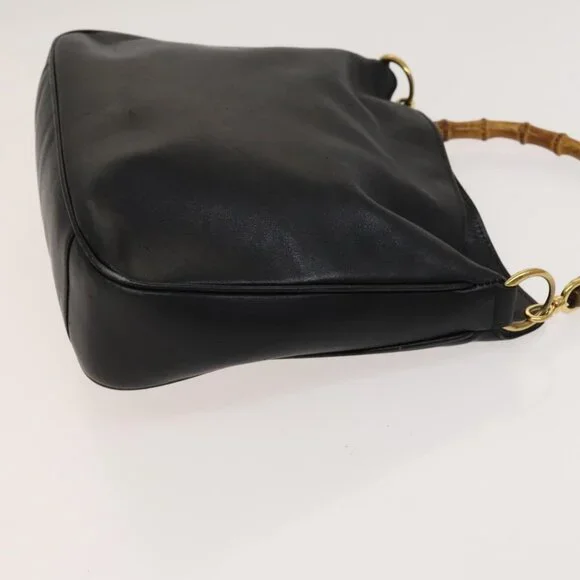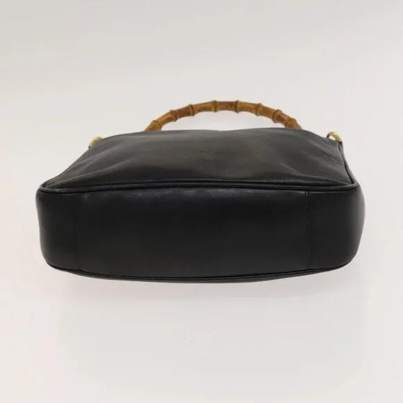 GUCCI Bamboo Hand Bag Leather 2way Black Gold 001 2113 1638 Auth 117509