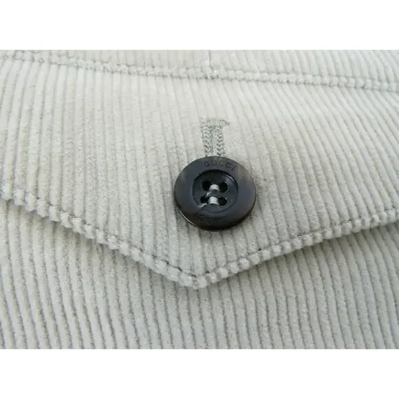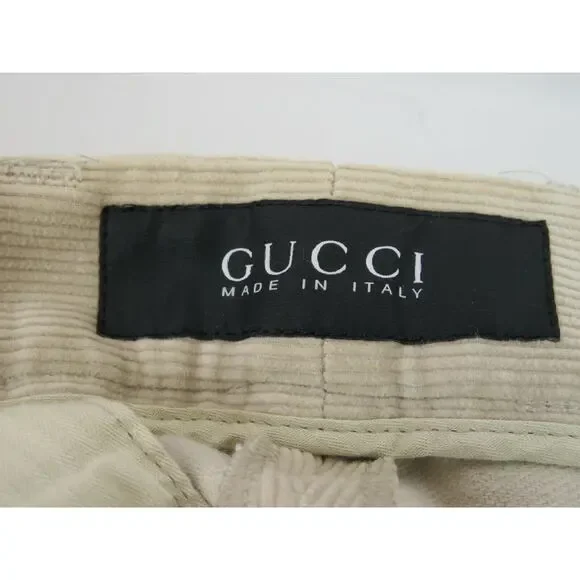 BEIGE COTTON VELVET CORDUROY REGULAR FIT TROUSER PANTSBy GUCCI100 % AUTHENTIC,GUARANTEED!!!Made in ItalyStraight legs2 Back button pockets2 Side slit pocketsFront mini slit pocketFinished ends100% CottonMeasurements:Waist 42"Rise 13"Outseam 48.5"Inseam 38.5"Leg opening 21"Size 56 - print on the tagOriginal price $995