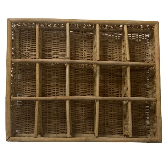 Vintage Wicker Handcrafted Hand WovenBeautiful Boho Ratan Decor Piece For Displaying Your Trinkets or CollectiblesAlso A Perfect Drawer Organizer orPlace In Closet or CabinetVINTAGE BOHEMIAN WICKER DECORGreat for Decorations , CollectiblesJewelry , Socks , Ties , Hair Accessories Sewing Needs or Many Other UsesVintage Wicker Display OrganizerHand Crafted As Is Vintage ItemAntique / Vintage ConditionApprox SizeHeight 16 1/4”Width20 1/4Depth 3”Tags: Woven Rattan WickerHandmade Bamboo Baskets Natural Banana Leaf BasketOrganization Organizers Storage BinsDisplay Boho Farmhouse Cottage Coastal Cottagecore Gypsy Hippie Shabby ChicNautical Modern MCM Traditional Mid Century French Cottage CoreRustic Primitive Italian French Country Asian Japanese Feng Shui Minimalist Collector Collage ShadowboxFollow Me For More:Mens Womens Kids Fashion Home DecorFair Isle Nordic Fishermans Sweater Vest Christmas Hallmark Ornaments Mackenzie Childs USA Made Bakelite Pyrex Lenox Fenton Barbie Lego’s American Girl Littlest Pet Shop Hello Kitty Free People Magnolia Pearl Reformation Doen Ozma Toteme Tuckernuck Anthropologie Zara Veronica Beard Sezane Revolve Mother J. Crew Betsey Johnson Polo Ralph Lauren Purple Label Coogi 3D Textured Levi’s UGG Birkenstock Lululemon Patagonia Columbia Hoka Northface Nike Peter Millar LL Bean Victoria’s Secret Fossil Tumi Coach Tiffany Pandora 925 Sterling Silver 14K Gold Cubic Zirconia Swarovski Waterford Crystals Diamond Boutique