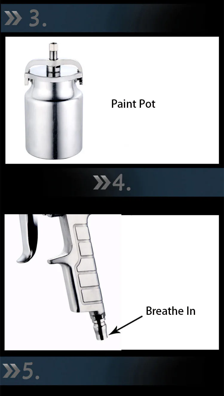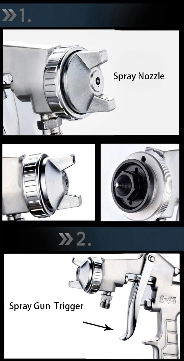 5、Small Tip: In order to prevent nozzle clogging, please consult your colorist to understand the dilution ratio and dilute the paint before use. Please clean it immediately after painting to prevent nozzle clogging.