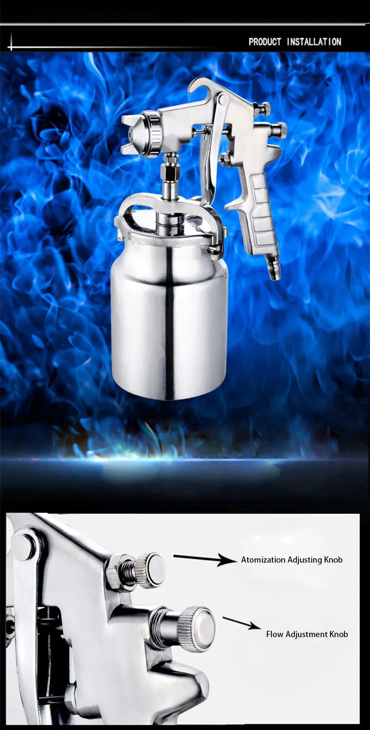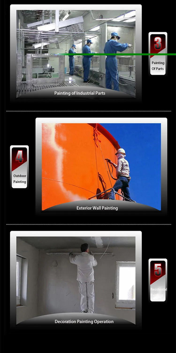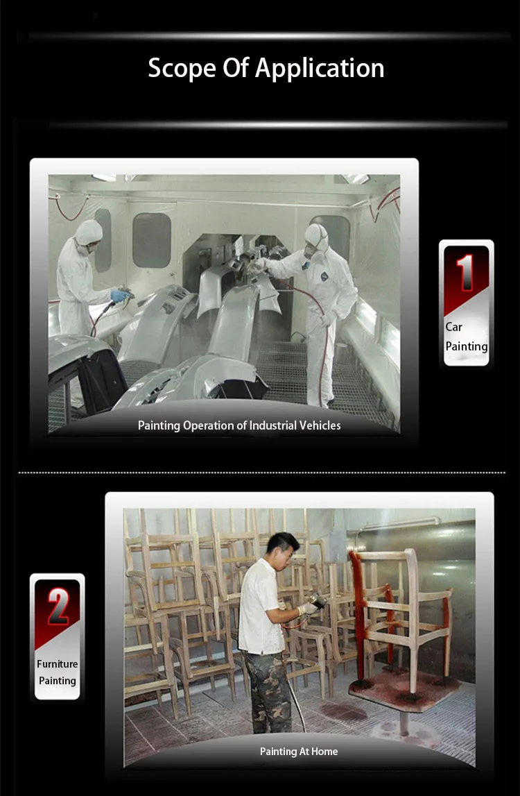 3、Easy Operation: Rotate the spray range valve and spray fluid valve to adjust the spray mode, fluid control and air pressure; In addition, it has the advantages of light weight, small size, and easy operation. Just pull the trigger of the spray tool.