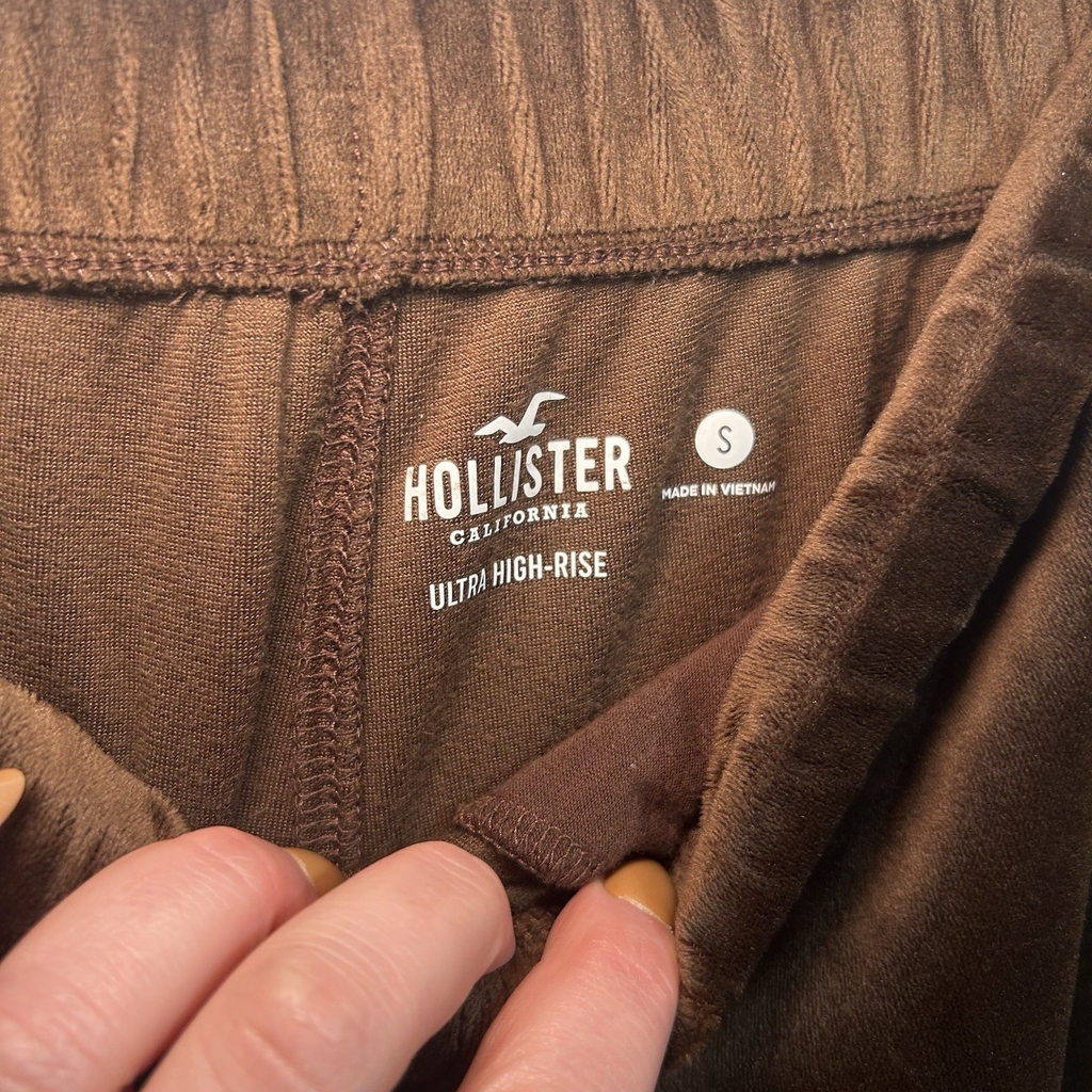 Hollister Crop Velour Brown Full Zip Sweat Set Track Suit Joggers