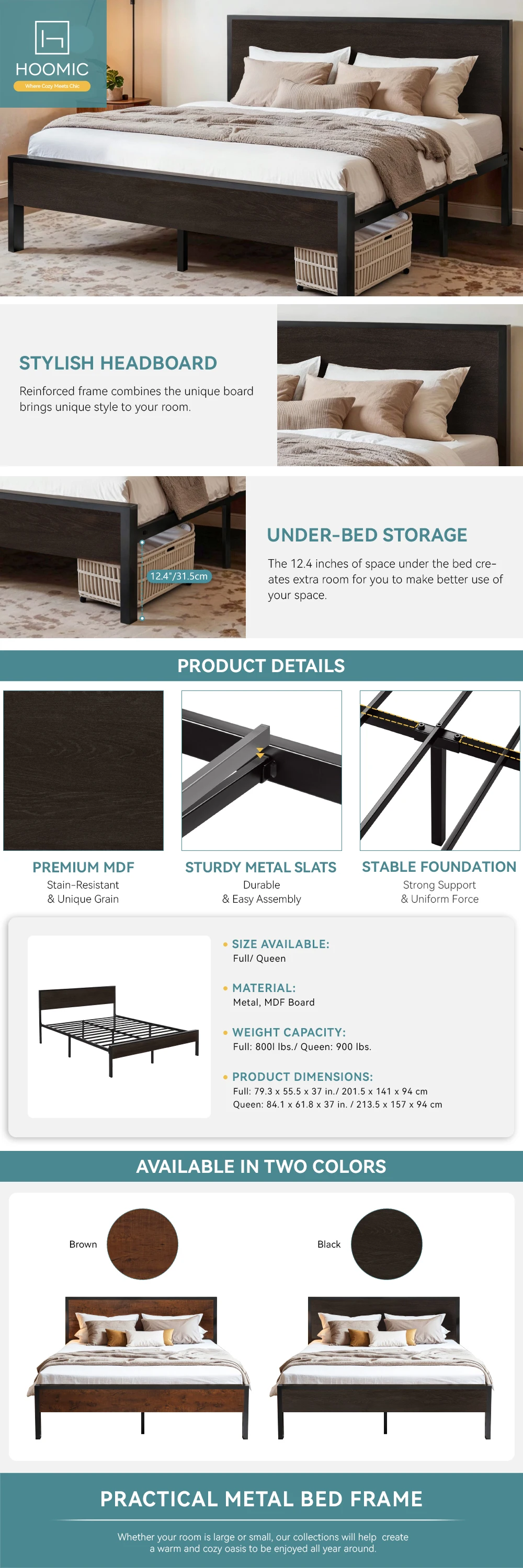 Sturdy Construction: Built with high-quality metal and solid MDF board, our bed frame offers reliable support for a comfortable night's sleep