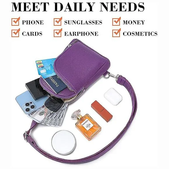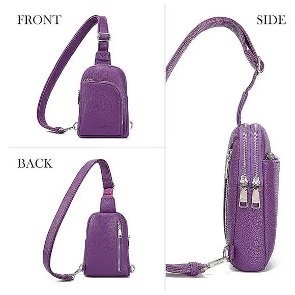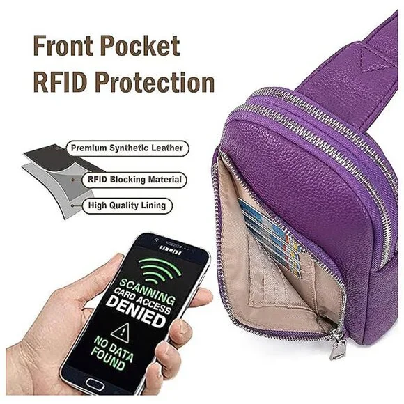 * RFID Blocking:This crossbody bag's front zipper pocket features proprietary blocking material that effectively blocks RFID signals, protecting your personal cards from unauthorized access. Keep your credit card details safe while traveling or shopping with peace of mind. * Multi-functional Structures: This sling bag for women boasts two spacious main zip compartments for ample storage. It also features a front zip pocket with eight RFID Blocking card slots for enhanced security, along with a convenient rear zip pocket. Perfect for organizing essentials like your phone, wallet, credit cards, ID, and other small items with ease and peace of mind.