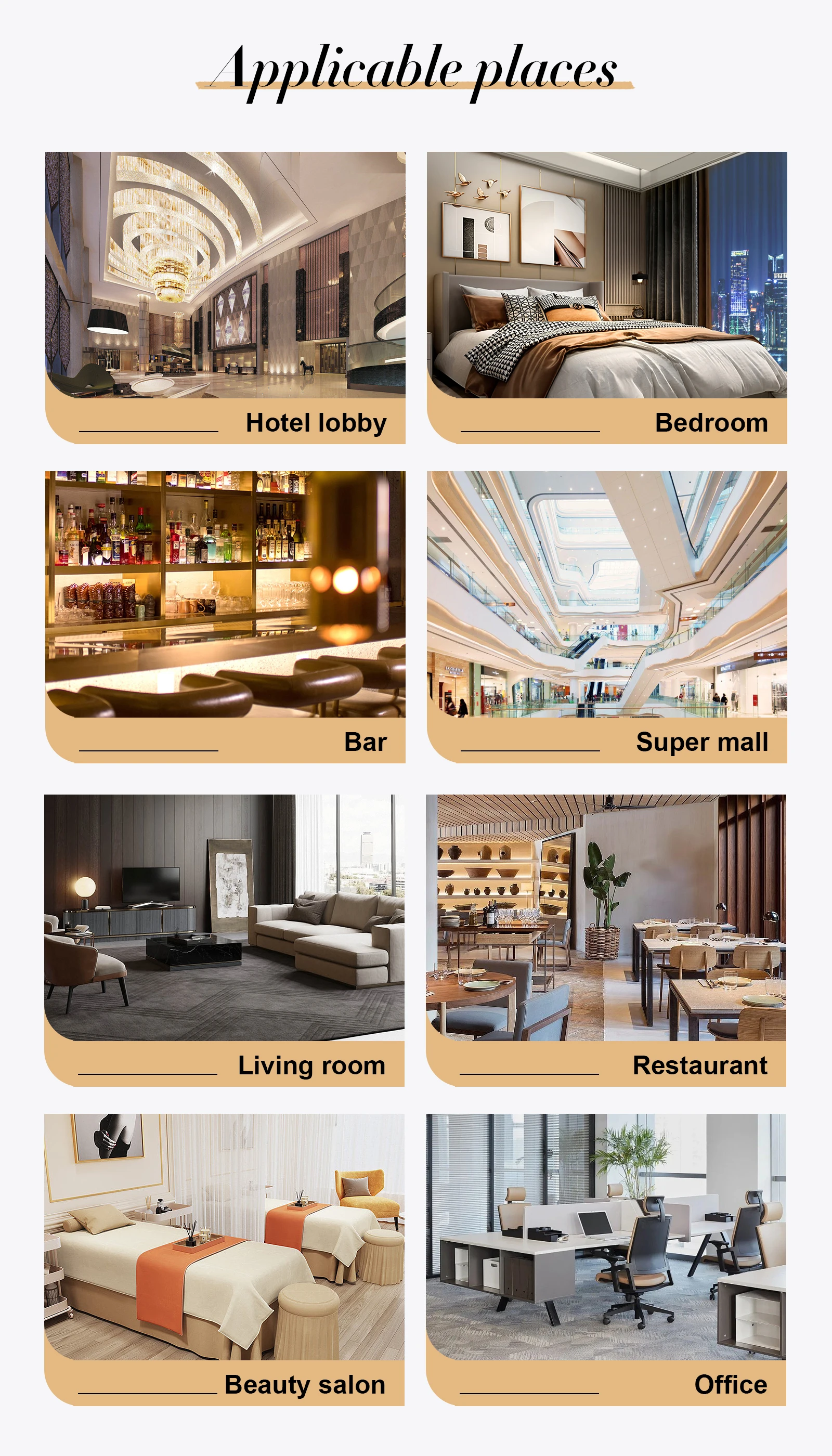 • Applicable scenarios: high-end hotels, clubs, home spaces.
