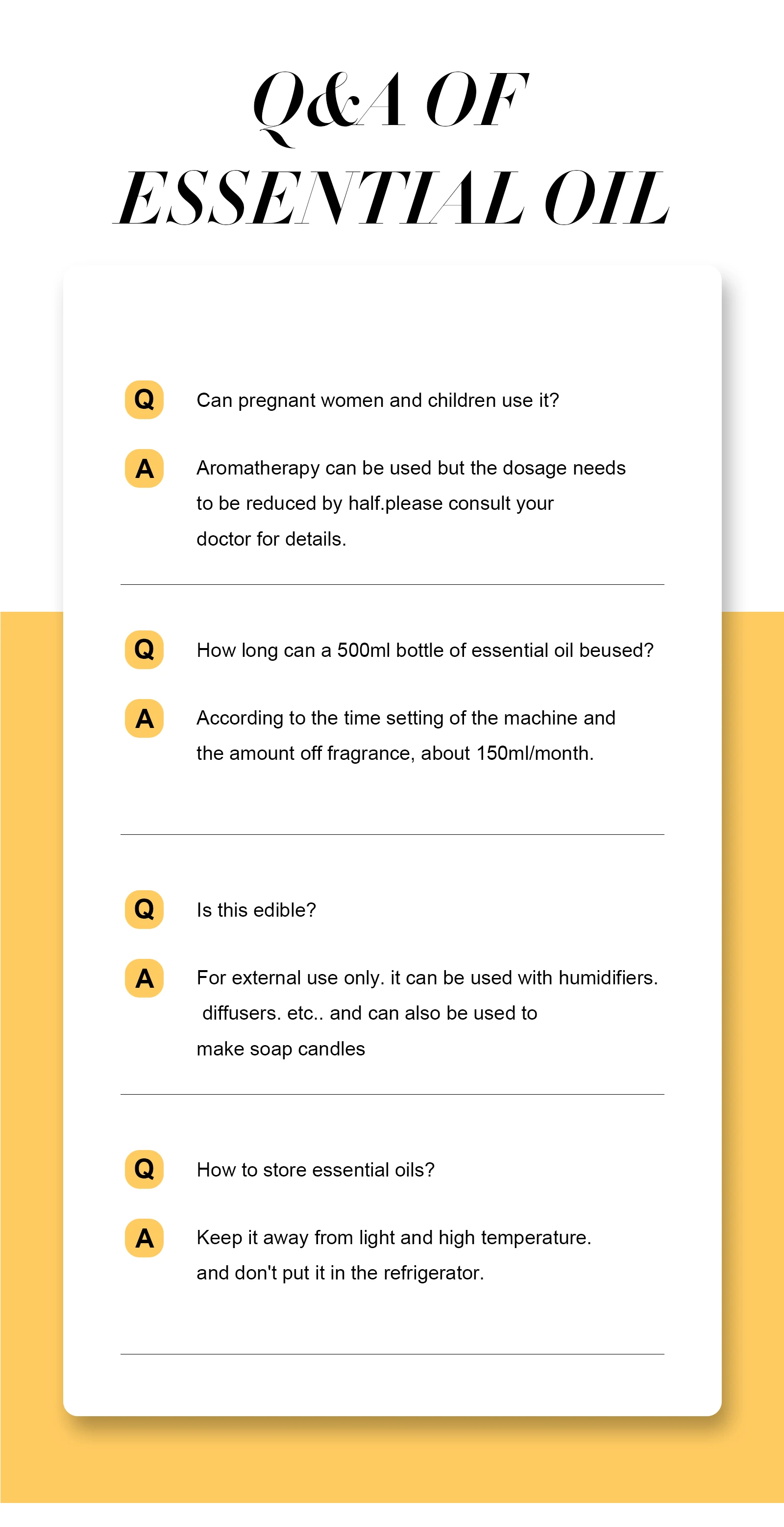 Our essential oil is not just for diffusers; it's a versatile product that can be used in various ways. It's perfect for making car perfume, air fresheners, or even as a base for your own DIY creations. The concentrated nature of the oil ensures that a little goes a long way, making it an economical choice for those who value quality and longevity. The absence of humidifier compatibility ensures that the oil maintains its integrity and does not dilute, preserving its potency and efficacy.