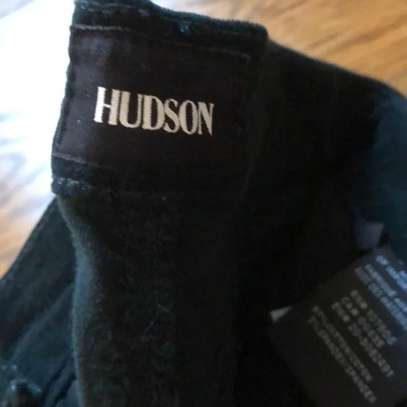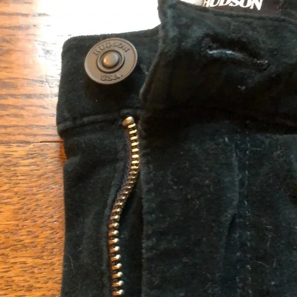 A classic super skinny silhouette with five pocket detailing from Denim favorite Hudson in an edgy dark green velvet. A flattering high waist will make these a staple. Pair with black ankle booties and an oversized slouchy sweater for instant cool girl vibes. Excellent condition with no known flaws. Size 25.