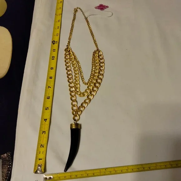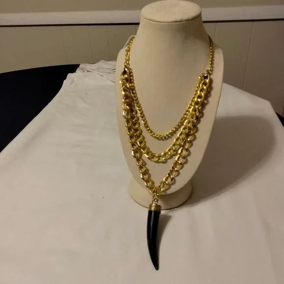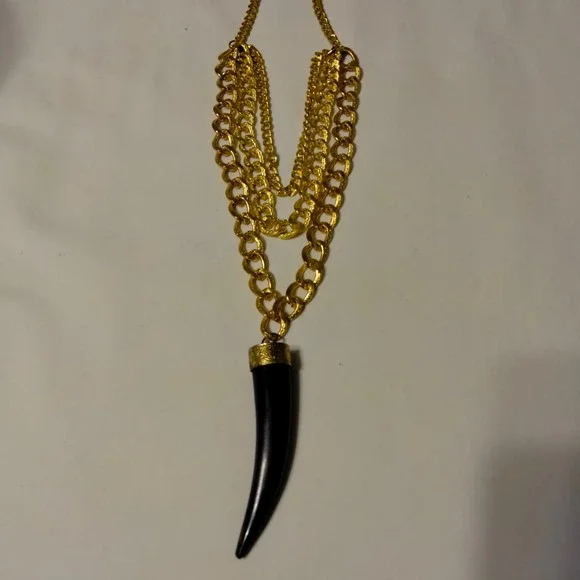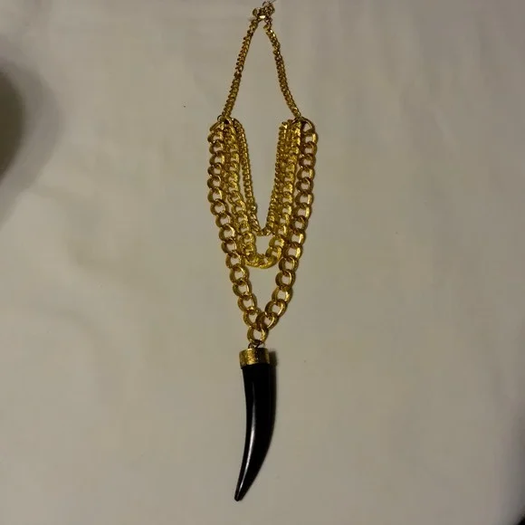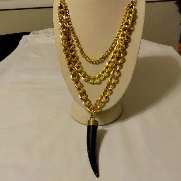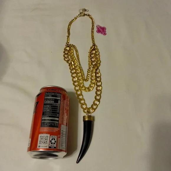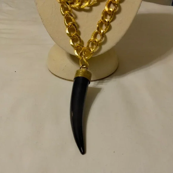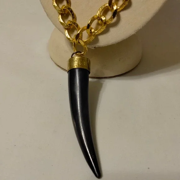 Iris Apfel & Bajalia Iris Apfel & Bajalia for Neiman Marcus Trunk Gold Chain & Bone Horn Pendent Statement NecklaceSoda can in picture for scalePlease see all pics as they are always a part of the description.