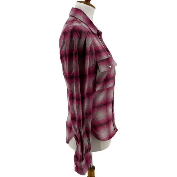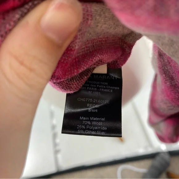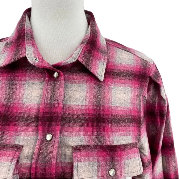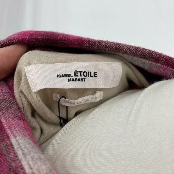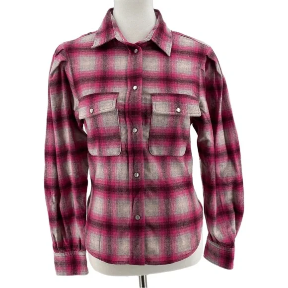 Isabel Marant Pink Plaid Wool Long Sleeve Flannel Size 2Pink wool Reosi shirt from ISABEL MARANT ÉTOILE featuring plaid check print, classic lapels, front button fastening, long sleeves and two chest flap pockets.Approximate Measurements:Pit to pit: 17.5"Length: 21.5"Condition: New With TagsMade in: TunisiaInventory: WT4974.12.3