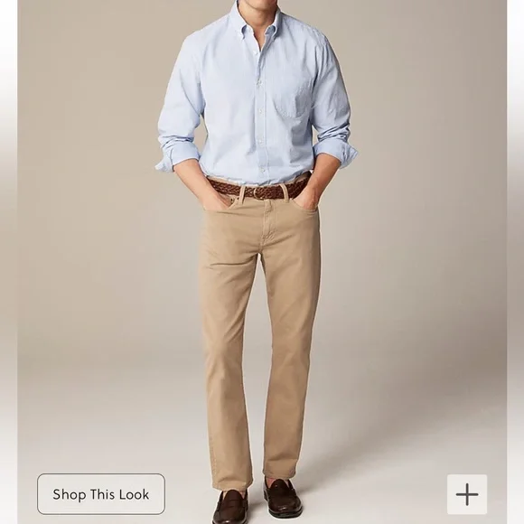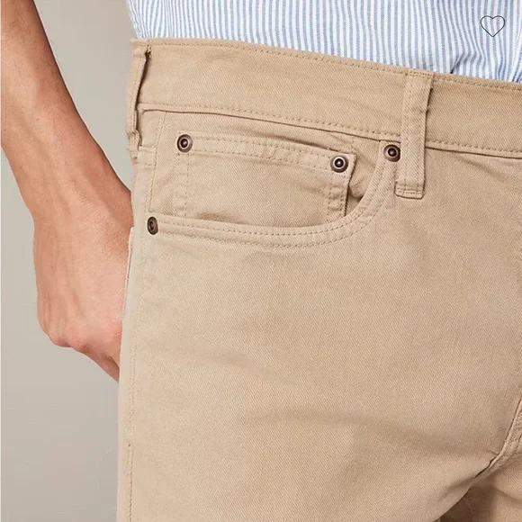 Meet the garment-dyed five-pocket pant...-aka your new MVPs (most versatile pants). Made to be the sweet spot between our world-famous stretch chinos and denim, these pants are built with comfortable 9.5-ounce stretch cotton twill, and cut like your go-to jeans. Since they're garment-dyed, they have a perfectly imperfect color that will fade gently the more you wear them.97% cotton/3% elastane.Zip fly.Traditional 5-pocket styling.Machine wash.Due to the saturated color of this garment, we recommend washing separately and wearing with similar or darker shades, as color transfer may occur on lighter garments.Import.Select stores.Item AZ962.Color: Khaki StrawNew with tags condition in manufacturer packaging. Approximate measurements flat: Waist: 19”Rise: 11.5”Inseam: 31”
