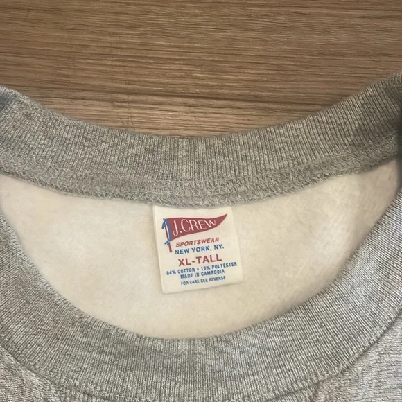 Size XL TallOnly worn once! Great condition and practically brand new!that can stand up to daily wear and tear, looks great with everything and feels just like an old favorite right from the start. Cut on the cross grain (an old-school method that prevents shrinkage), this 14-ounce cotton-polyester fleece is heavy enough to keep you warm but light enough that you can practically wear it all year-round. The interior is brushed for softness, and the richly dyed colors will only look better the more you wear them. All in all, this isn't just a new layer—it's your new best friend (from website).84% cotton/16% polyester.Long sleeves.Rib trim at neck, cuffs and hem.Machine wash.