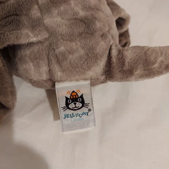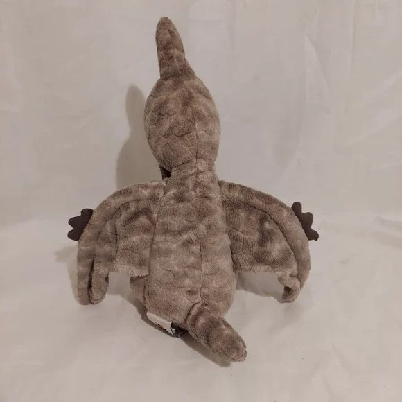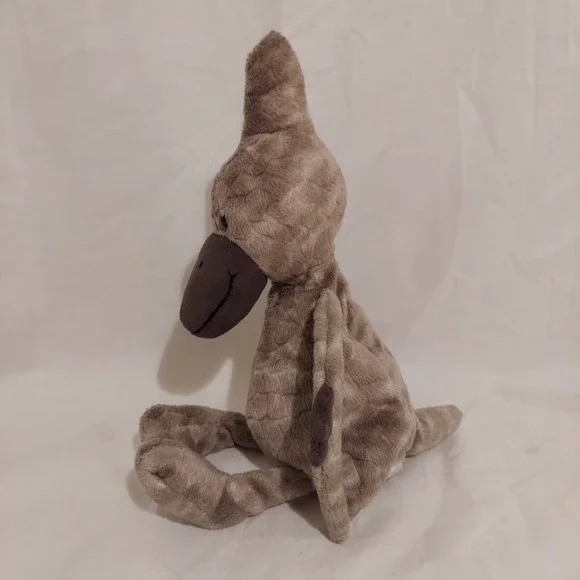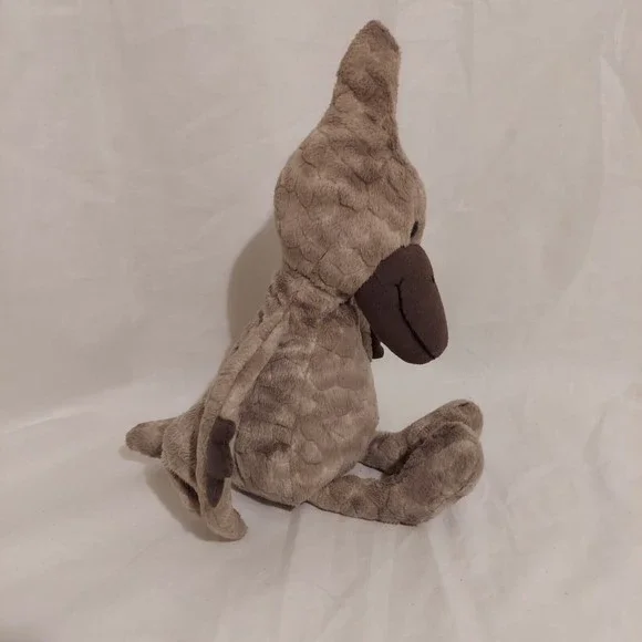 Terry Pterodactyl is from Jellycat London. Plush stuffed flying bird dinosaur animal. Brown, grey, gray greige in color. Measures 14 inches from his pointed head to his feet. Plastic safety eyes, sewn mouth and nose. His fur has a dimensional scale pattern to it and mottled in color. His beak and "claws" on his wings are a solid brown in color faux suede. He does not have his hang tags, but he does have all his tush tags. Soft and huggable, he would make a great lovey, lovie, comfort, or security friend. Great prop or decor for that Jurassic jungle theme room. Please see all pictures, sold as seen and described. I will gladly combine shipping on multiple purchases when possible. Any questions, please contact me. Thank you for looking.