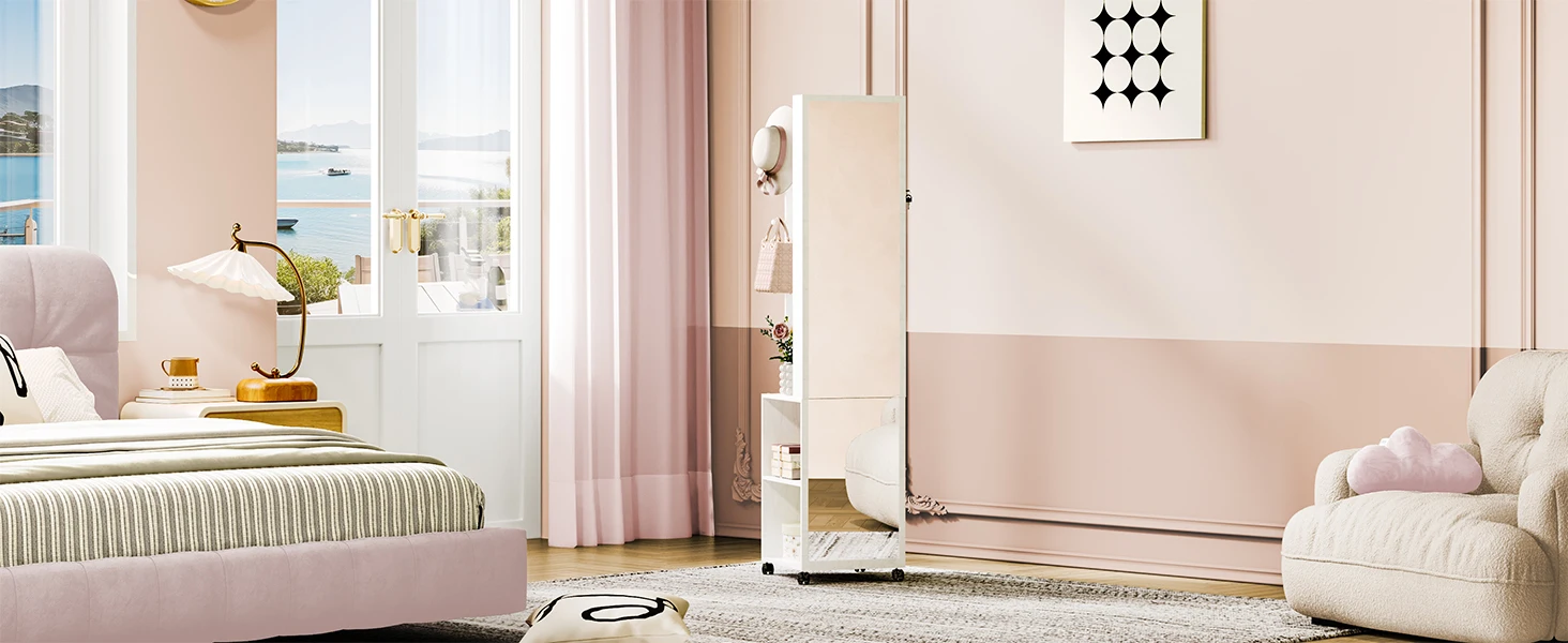 5. 【Full-Length HD Glass Mirror】With a full-length HD glass mirror, you can easily apply makeup, try on jewelry, and care for your skin without constantly opening and closing doors. And also, the bottom mirror could help you easily see your shoes to match your clothes.