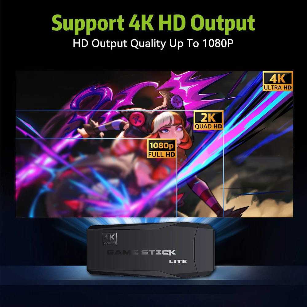 High-definition 4K resolution, this retro game console supports 4k ultra-high-definition TV video output (1080p/720p), and rich details display, bringing you an immersive audio-visual feast.