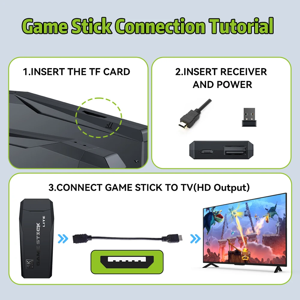 We have prepared a 64GB TF card for the M8 game stick, which has more than 25,000 retro games built-in, including a large number of classic arcade games and fighting games. It will take you back to your childhood quickly and is the best choice for retro game lovers.