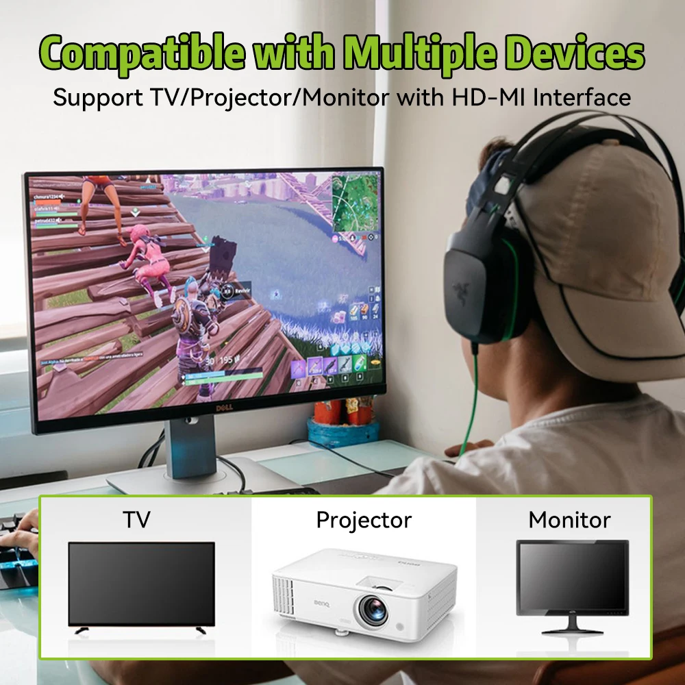 HD compatible, supports devices such as monitors/TVs and projectors with HDMI input