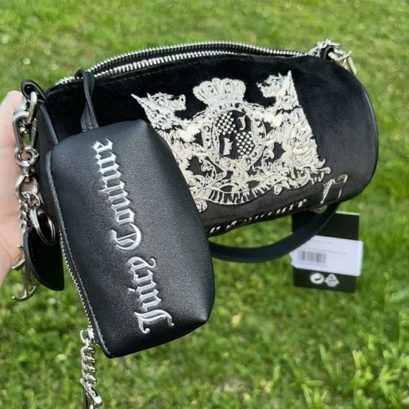 Juicy Couture Spring Summer 2024 Collection “Scotty Dog” UK Black Velour Barrel Bag BNWTBrand new with tagsVelour barrel bagExclusively from the United Kingdom onlyThis is a HIGH QUALITY Barrel shaped purse from Juicy Couture UK, it has a soft black velour fabric with small stainless steel feet on the bottom, comes with a detachable crossbody strap and a detachable keychain. Also comes with a detachable coin pouch inside. These are VERY RARE to come by. Yours will come packaged like shown in the last photo. Get yours now for a special deal while you have the chance 🫶🏻 OPEN TO ALL OFFERS ❤️