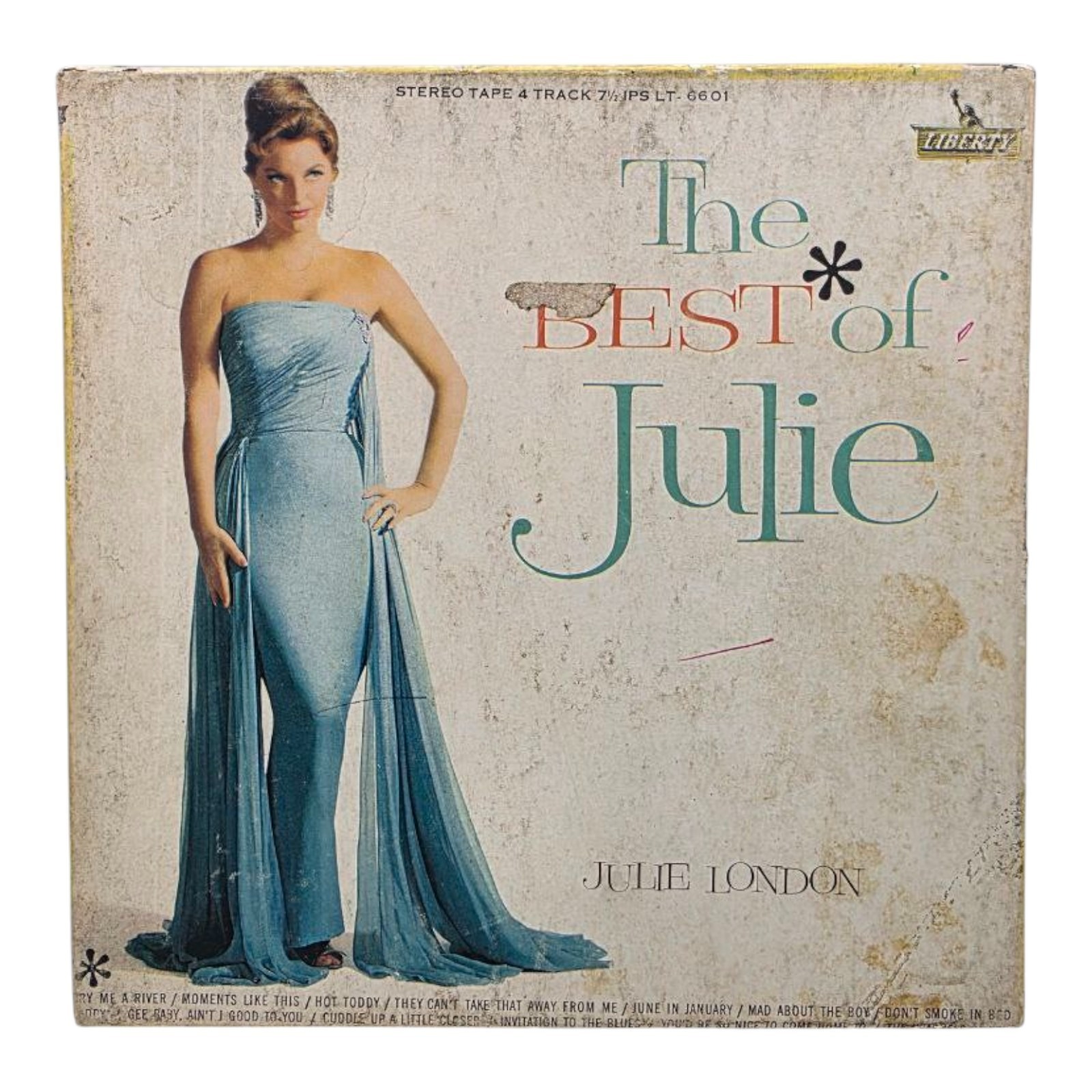 The product is a vintage Julie London The Best of Julie 4 Track Reel-to-Reel Tape, released by Liberty Records in 1962. This high-fidelity album features the best of Julie London's vocal style from the 1960s, with a mix of Pop and Easy Listening genres. The brown cardboard sleeve contains one stereo audio channel, making it a valuable collector's item for music enthusiasts looking for a unique format to enjoy classic music from the era.