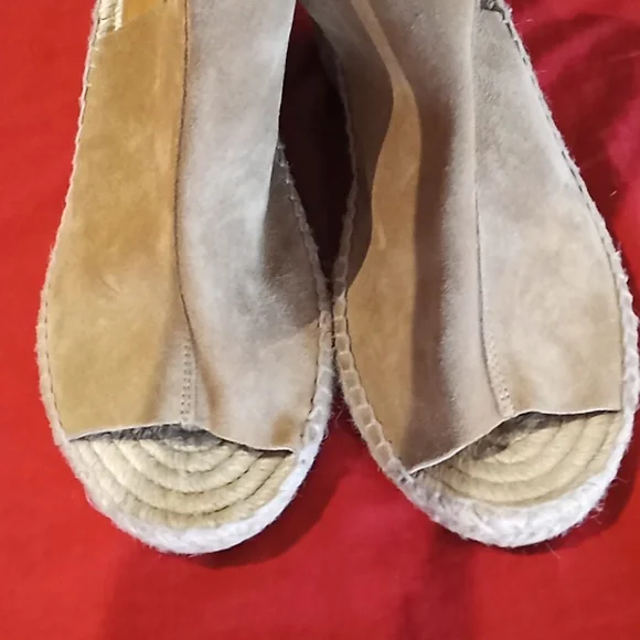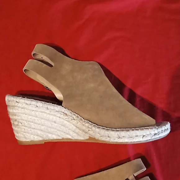 KANNA Nude Tan Suede Open Toe Wedge Double Buckle Slingback Sandals. Size 91/2.