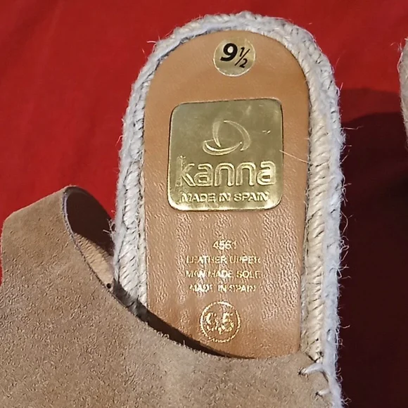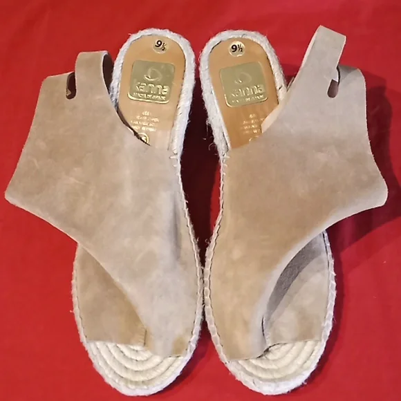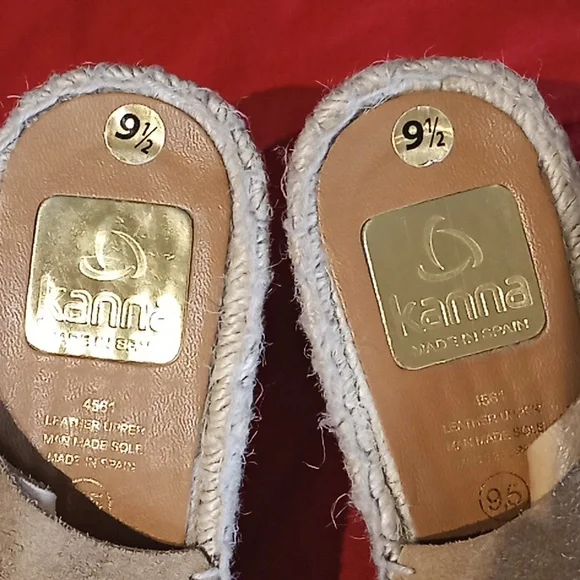 KANNA Nude Tan Suede Open Toe Wedge Double Buckle Slingback Sandals. Size 91/2-41.Very Gently Worn. Excellent Like New Condition. Made In Spain. Super Clean.