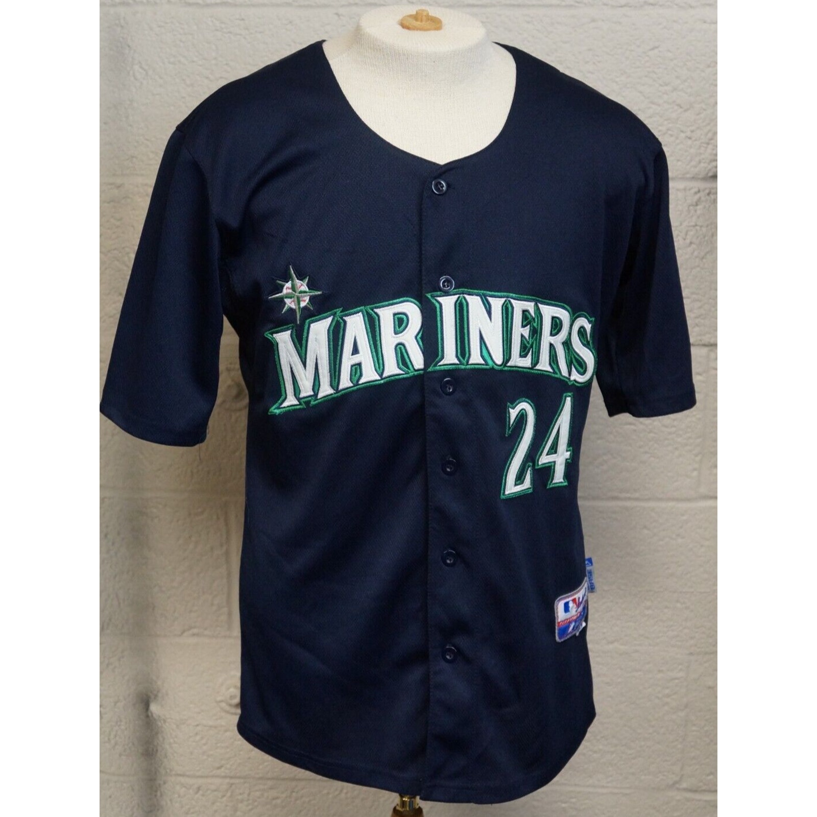 This authentic Seattle Mariners jersey by Majestic is a must-have for any baseball fan. Featuring the name and number of Ken Griffey Jr, this size 50 jersey is made for men and is officially licensed by the Major League Baseball league. The blue color and design are perfect for showing off your team spirit. The jersey is made in the United States and is a great addition to any sports memorabilia collection. Whether you're watching the game at home or cheering on the Mariners at the stadium, this jersey is sure to make you stand out. Get yours today and show your support for one of the greatest teams in baseball history.