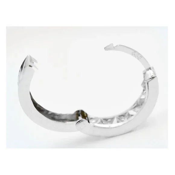 Karat : 14K white goldGemstone : 8 Lab Created White Sapphires - 0.10 ct eachWhite sapphire grades,Hue . . . whiteSaturation . . . vividCut . . . excellentNo inclusions or flawsStyle : hoop/channelSetting : channelClosure : snapDimension : 16 mm (0.63") x 4 mm (0.15") - diameter each earring measurements