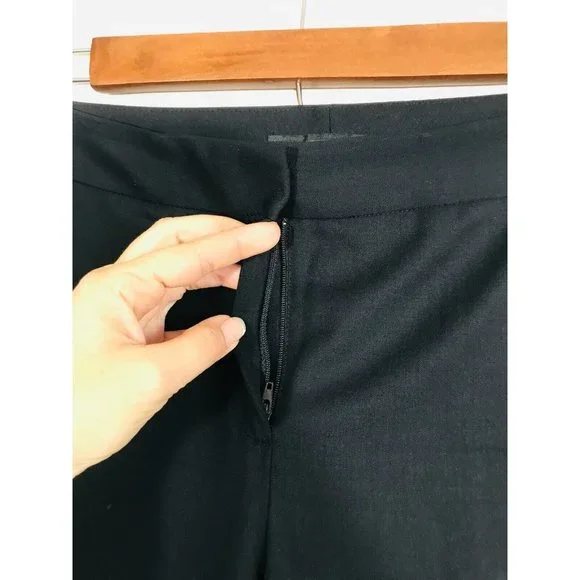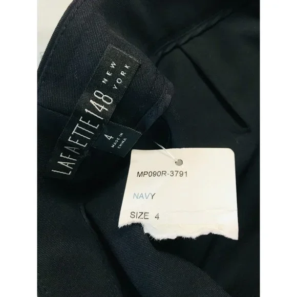 Condition: NWTFlaws: NoneBrand: LaFayette 148 New YorkStyle: Menswear Wool Dress PantMeasurements are Approx. - Taken lying flatSize: 4Waist: 15"Hips: 18.25"Rise: 10"Inseam: 32.5"Color: Navy Blue - Dark WashDetails: Classic contemporary fit. Relaxed, wide leg. Flat front; sits at waist.SKU:Material: 96% Virgin Wool, 4% Elastane Blend