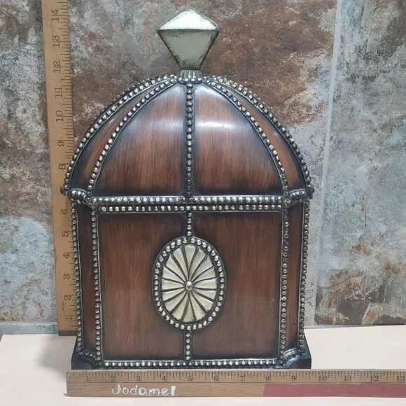 Large Aleron Box Decorative Trinket Dome LidMeasurement: 10 x 5 x 15.5 inWeight: 6 lbs 9.6 ozYour item may come in a re-used box with some labeling from other companies In my effort to recycle and re-use. Thank you for supporting my small business.Features:• Decorative Box• ChinaCondition: Pre-Owned GoodChipped 2 spots on underfoot, photo 10.