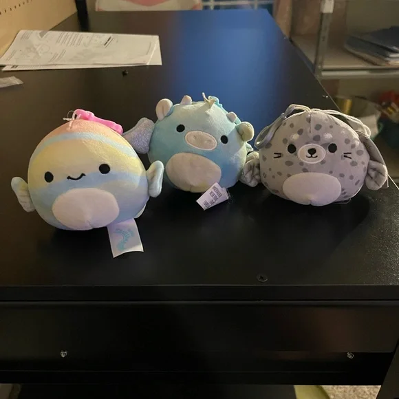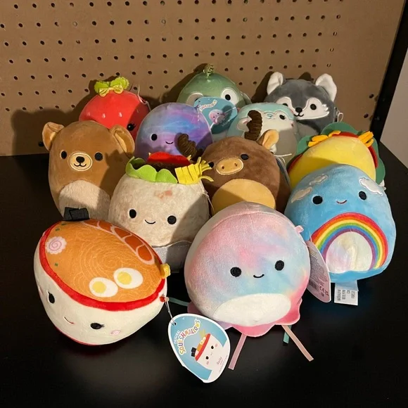 Selling lot of 40+ Can send pics of allZinx small alienEdward medium eagle rare no tagMalik medium dinosaurHenry medium turtleMisko 8in water bearLeonard 8in rainbow lionAdila 8in antelopeFlipmellow dinosaursStackable Bop BunnyDylan bum bunz soupTim bum bunz fried shrimpLarge Donkey/horse Phillip and Jason flipmellow Large Chip and rocky (tag broken) beaver/raccon flipmellowHettie pig 14in Joey dragon 14inch Fanina frog 14inch Squishdoos 16inch JeanneAshley small stain Apple 12inKangaroo Quinn 12in Kangaroo Quinn 5in Tiny squishmellows Poleena 14in dinosaur 3 clips Snowman ornament flipmellowSmall lot x12
