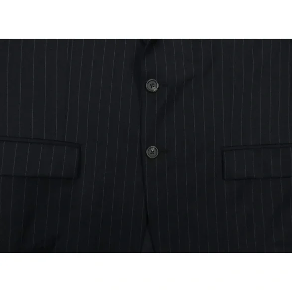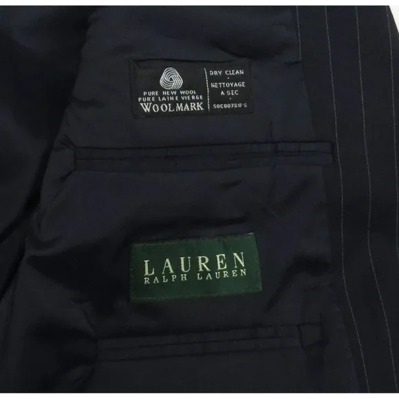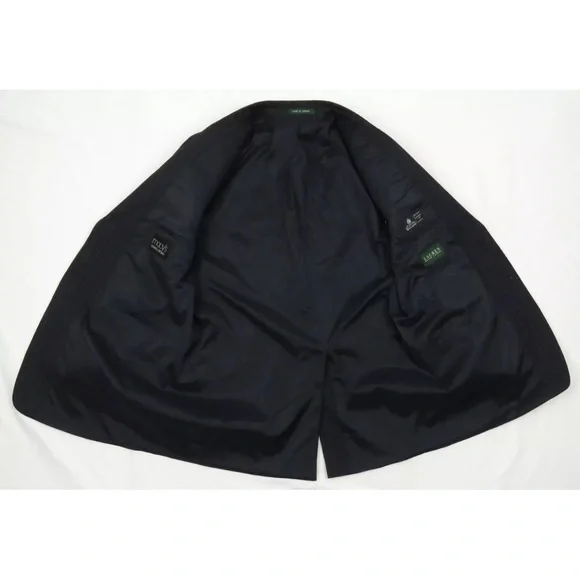 Description: NWOT Lauren Ralph Lauren LRL 100% Pure New Wool Pinstriped 2 Button Blazer Sport Coat Jacket-Two button closure-Two front flap pockets-Left chest pocket-Single vented-Four button cuffs-Notch collar-Union madeSize (Check Measurements): Mens 42 RColor: BlackFabric: 100% pure new woolCondition: New Without TagsItem#: 65316Measurements are in inchesArmpit to armpit: 23"Back bottom of the collar to the hem: 32"Shoulder to shoulder: 19 1/2"Shoulder seam to end of cuff: 25"BUYING VINTAGE·We do our best to thoroughly inspect all items for any visible imperfections i.e., rips, repairs, holes, stains, etc. and note as such.·Please note vintage sizes are not always comparable to today's sizing. Please refer to the measurements in the description for a more accurate depiction of the true size. If an issue should arrive, please contact us prior to leaving a negative as we strive for providing excellent customer service.Please compare your measurements to the measurements provided in the listing description to ensure a proper fit.
