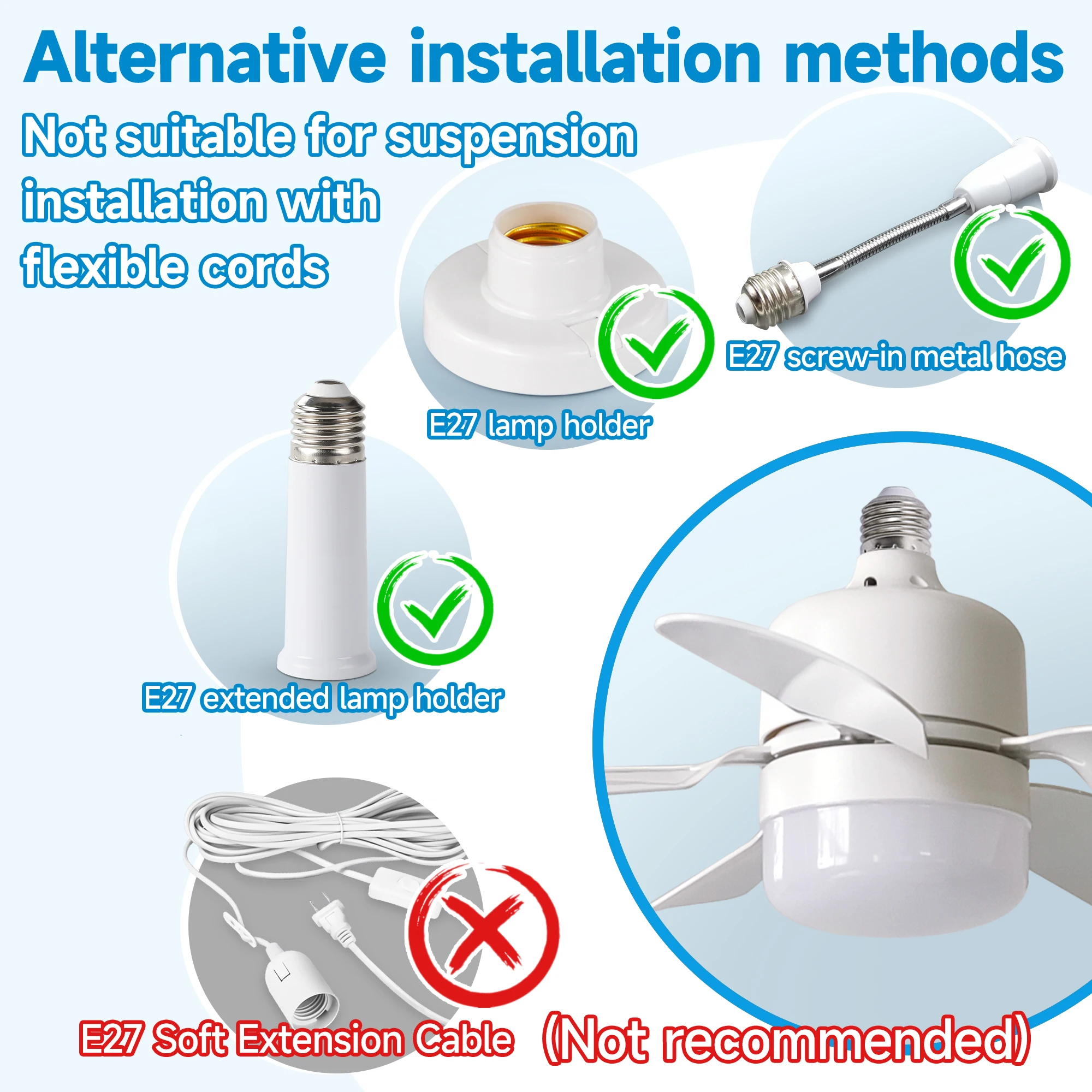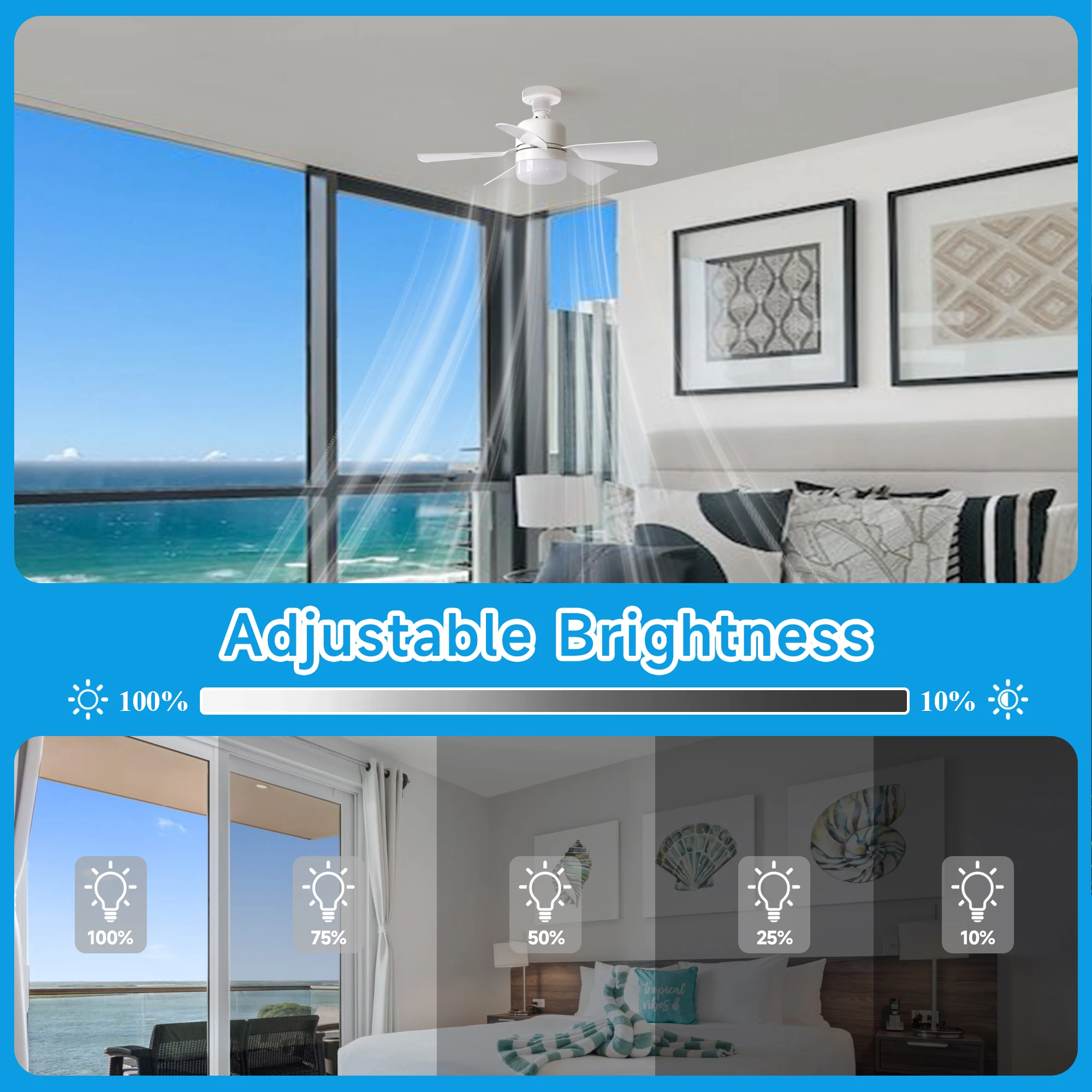 LED Ceiling Fan Light E27 with Remote, Dimmable, Speed Change, Suitabl