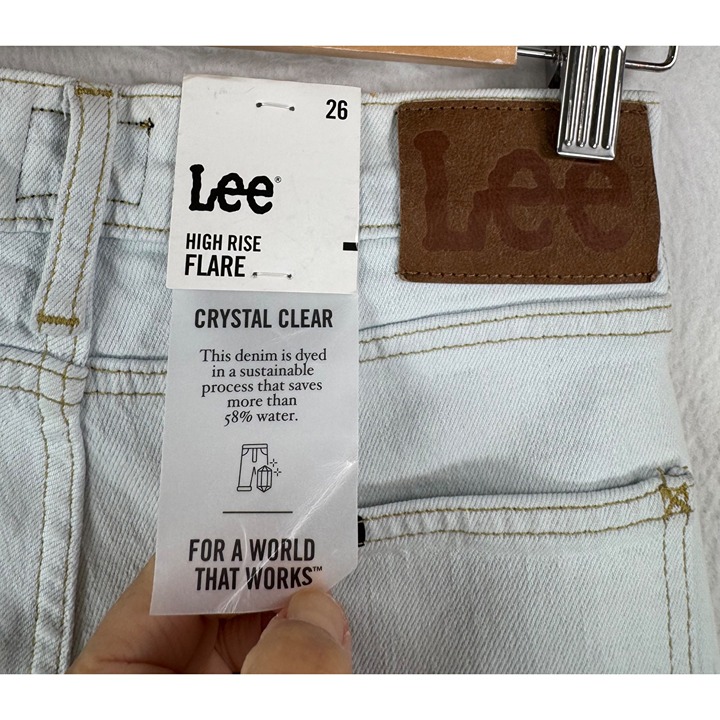 Crafted with sustainable practices, these Lee High Rise Flare Jeans feature a striking two-tone blue wash, providing both style and comfort for modern wardrobes.