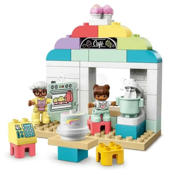 Missing 1 pc (6296226: BRICK 2X4, W/ BOWS, NO. 16).Otherwise excellent condition!• Retired Product46 PiecesItem: 10928Ages: 2+Year: 2020 At the awesome LEGO DUPLO bakery, kids can help the baker cook with the mixing machine and oven, serve food and toy cakes in the café, then drive the van to deliver cupcakes.The main building measures over 5” (15cm) high, 7” (19cm) wide and 4” (11cm) deep.Weight ~ 1 lb 3.5 ozKeywords: educational play Café toy toddler role-play cupcake delivery van set✅DUPLO DISH ABS 4654829 31333 2012 White✅DUPLO BRICK 1X2X2 6101121 76371 2012 White❌BRICK 2X4, W/ BOWS, NO. 16 6296226 65985 2020 White