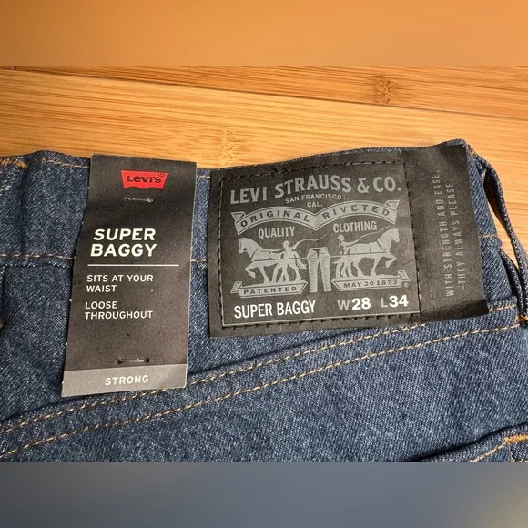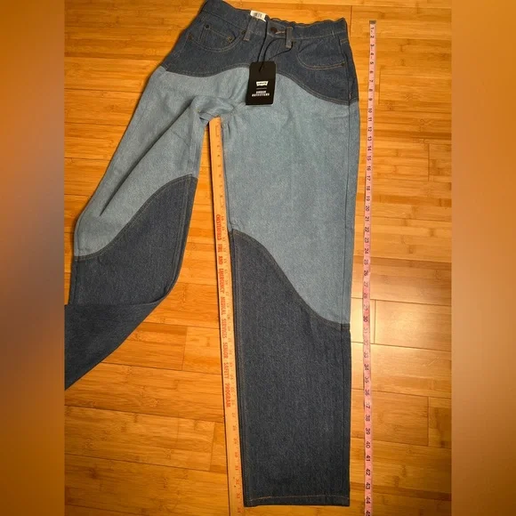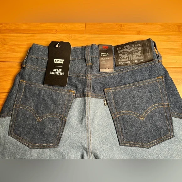 The vintage denim dark color with colorblocked denim detailing adds a unique touch to your wardrobe. The jeans have a super baggy fit with an internal drawstring closure, making them perfect for a comfortable and stylish look.These jeans are perfect for any occasion, whether you're hitting the town or just running errands. Get your hands on these unique Levi's x Urban Outfitters jeans today.MSRP: $118.00