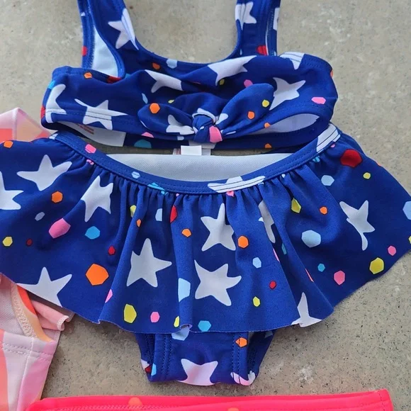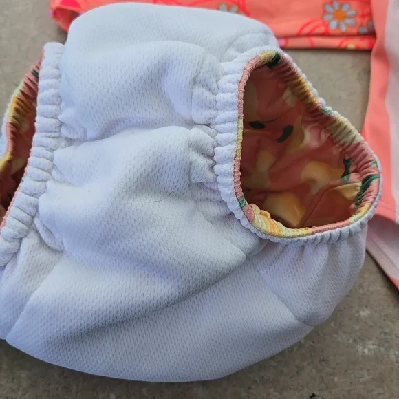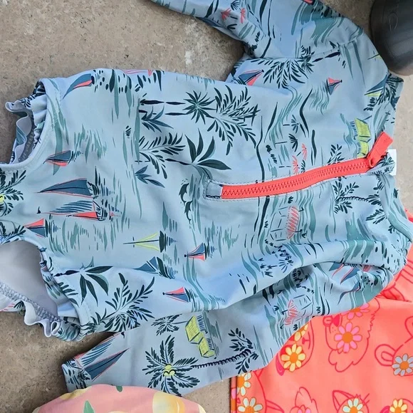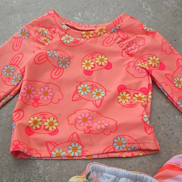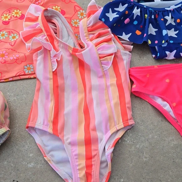 👙 LIKE NEW- LOT OF 12M BABY GIRL SWIM WEAR INCL WASHABLE SWIM DIAPER ⛱️Perfect condition.includes:-carters long sleeved one-piece swimsuit w ruffles-cat & Jack pink bottom w Gold dots-washable/reusable GREEN SPROUTS swim diaper-cat & jack blue & design bikini-cat & jack pink orange etc one piece-cat & jack orange kitty puppy rash guard top