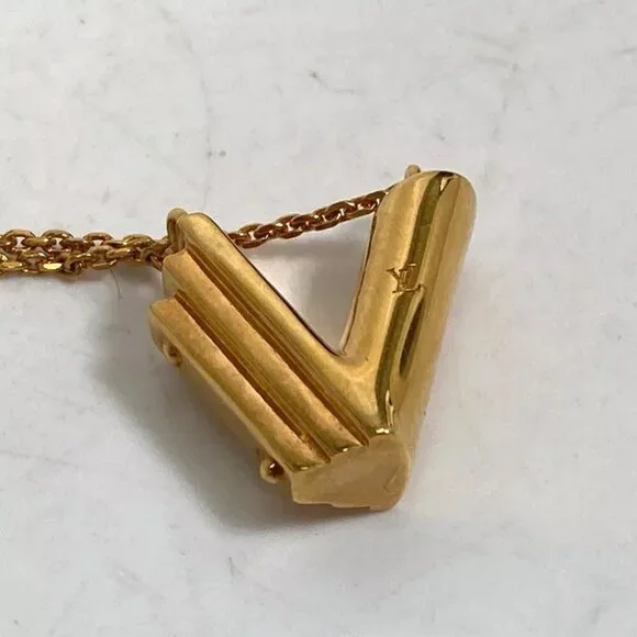 NAME:LOUIS VUITTON LV&ME Initial "V" NecklaceSHAPE:NecklaceMODEL NO.:M61077Code:LE1119COLOR:GoldMATERIAL:Gold PlatedAPPROX SIZE:Total Length: 13.4inch / 34cmListed hand measurements may have a 1-2cm difference.GENDER:Women'sADDITIONAL ITEMS:NoneITEM RANK:Used A RankCONDITION DETAILS:Metal fittings part:Minor scratchesPRODUCT INTRODUCTION:Louis Vuitton's LV&ME Initial "V" Necklace has arrived. The necklace with the motif of LV's V is eye-catching and will take your fashion to the next level.