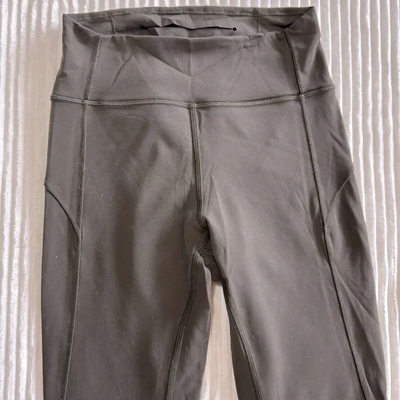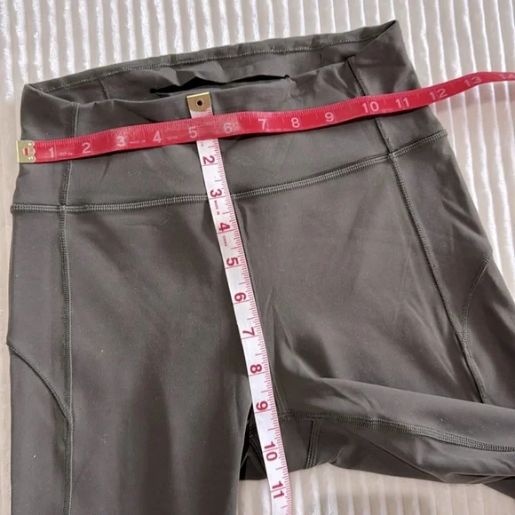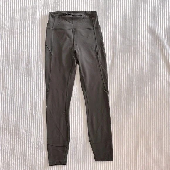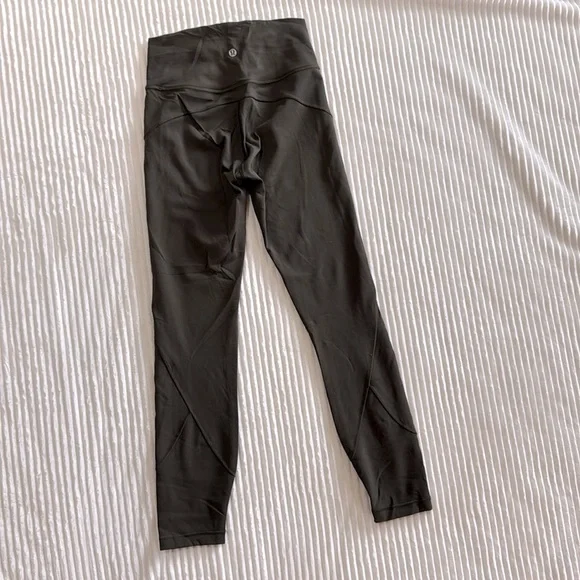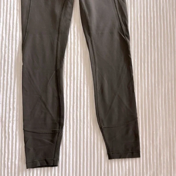 Lululemon In Movement 7/8 Tight *Everlux 25" inseamcolor: Dark Olive Greenstyle #: W5ANXS size 4condition - excellent used, no stains holes snags etcMeet your new studio workout companion: a sleek tight that fits like a second skin. Stretchy Everlux™ fabric dries quickly and wicks sweat in a flash, so you can go straight from pilates to spin.Everlux™Four-way stretch Everlux™ fabric feels cool to the touch, wicks sweat, and dries so fast it’s like magicFeaturesDesigned for: Train, yogaLycra®: Added Lycra® fibre for shape retentionHidden pocket: Stash your essentials in the hidden waistband pocketHigh-rise: Keeps you feeling covered and secureHugged sensation: Engineered to feel like a comfortable embrace throughout—it holds you close and moves with youInseam: 25"5 Star Rated Seller!Fast Shipping!