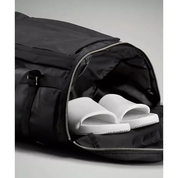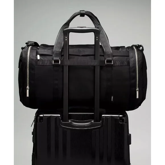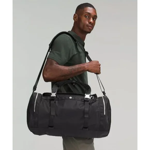 Lululemon Wunderlust Duffle Bag 40L Black OSBrand new with all tags.A day full of plans calls for a duffle full of storage solutions. The large zip opening offers easy access to items while adjustable straps hold a jacket or yoga mat in place.Bag dimensions: 55cm x 25cm x 27.5cm (21.7" x 9.8" x 10.8")Strap length when fully extended: 138cm (54.3")Volume: 40LExternal pockets keep your water bottle, shoes, and sweaty gear separateExterior padded pocket fits a 16" laptopCarry it by the handles or across the body with the detachable strapInterior slip pocketsSecure interior pocket for your small items of importanceTrolley-compatible sleeveMesh: 100% Recycled polyesterBody: 100% NylonLiner: 100% Recycled polyesterPlease note the model photos are for reference only. Please refer to the measurement and photos provided in the listing for the real product.196-007