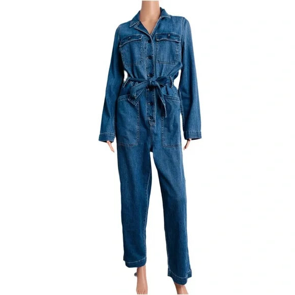 MADEWELL Denim Tie-Waist Jumpsuit in Claireville Wash Size MediumCondition: NewSize: MColor: BlueMaterial: 100% Cotton Details: Made of rigid 100% cotton denim, this button-front jumpsuit has a tie waist and flap pockets. Cuff the sleeves and hems to lend it a more laid-back feel.100% cotton nonstretch denim.Machine wash.Approx. Measurements (measured with garment laid flat): Length: 58”Sleeve Length (from collar hem to cuff): 28”Bust: 20”Waist: 16.5”Hip: 19”Front Rise: 12 3/8"Inseam: 25”Leg Opening: 17”*Mannequin is an XS*Smoke Free/Pet Free Home 😊 Color Disclaimer: Actual color may be different due to screen brightness and other factors.Any purchase worth $50+ receives a free gift 🥰. - Bundle and save on shipping!Thank you so much for visiting my consignment shop and have a wonderful day! 😊