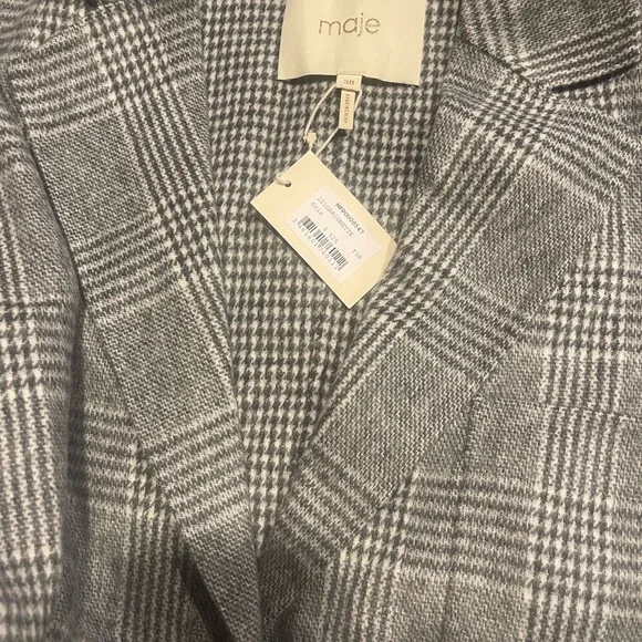 ABOUT THE BRANDBorn in Morocco to a family of craftspeople—by passion, if not by trade—Judith Milgrom developed a love for fashion and fabrics from an early age. In 1998, the designer founded Maje, a family business that creates bold, modern, urban fashion that’s both luxe and accessible. Inspired by Milgrom’s Moroccan roots, her life in Paris, and her travels, Maje seamlessly combines a wide range of global influences to craft elevated styles with subtly edgy and quirky details that lend an understated glamour to every look.FEATURESFits true to size, order your normal sizeDesigned for a slim fitModel measurements: 5'10" height, 33" bust, 26" waist, 35.5" hips, wearing a Maje size 1/smallNotch collarLong sleevesFront button closuresPatch pockets at chest and waistAllover plaid patternImportedWeb ID: 3889791