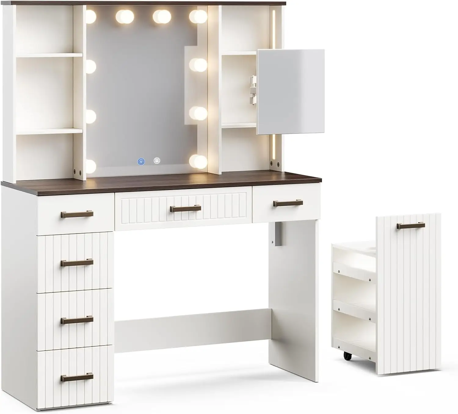 4. 【Ample storage space】Our vanity desk features 6 roomy drawers, multiple shelves, a spacious desktop, and a rolling cart—everything you need for organized beauty storage. Store makeup, hair tools, and accessories with ease, keeping them within arm's reach.