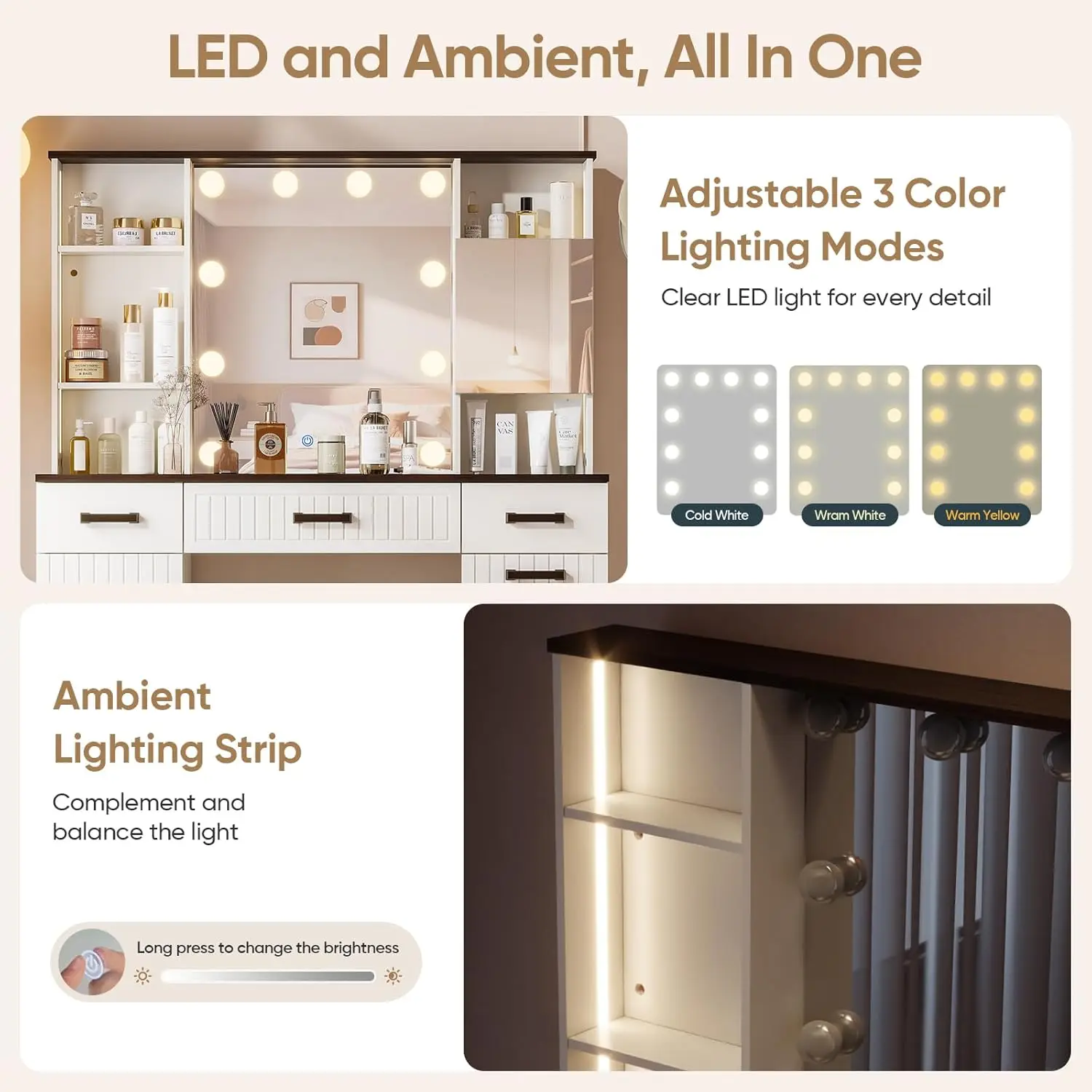 3. 【Set the Mood with Professional Lighting】Adjustable LED bulbs and ambient light strips let you choose from warm, neutral, or cool light, creating the ideal environment for any makeup look. From soft morning light to bright precision, enjoy the perfect lighting for flawless results. The ambient light also enhances your space, adding a subtle touch of style to your routine.