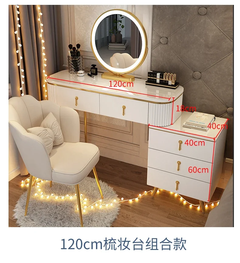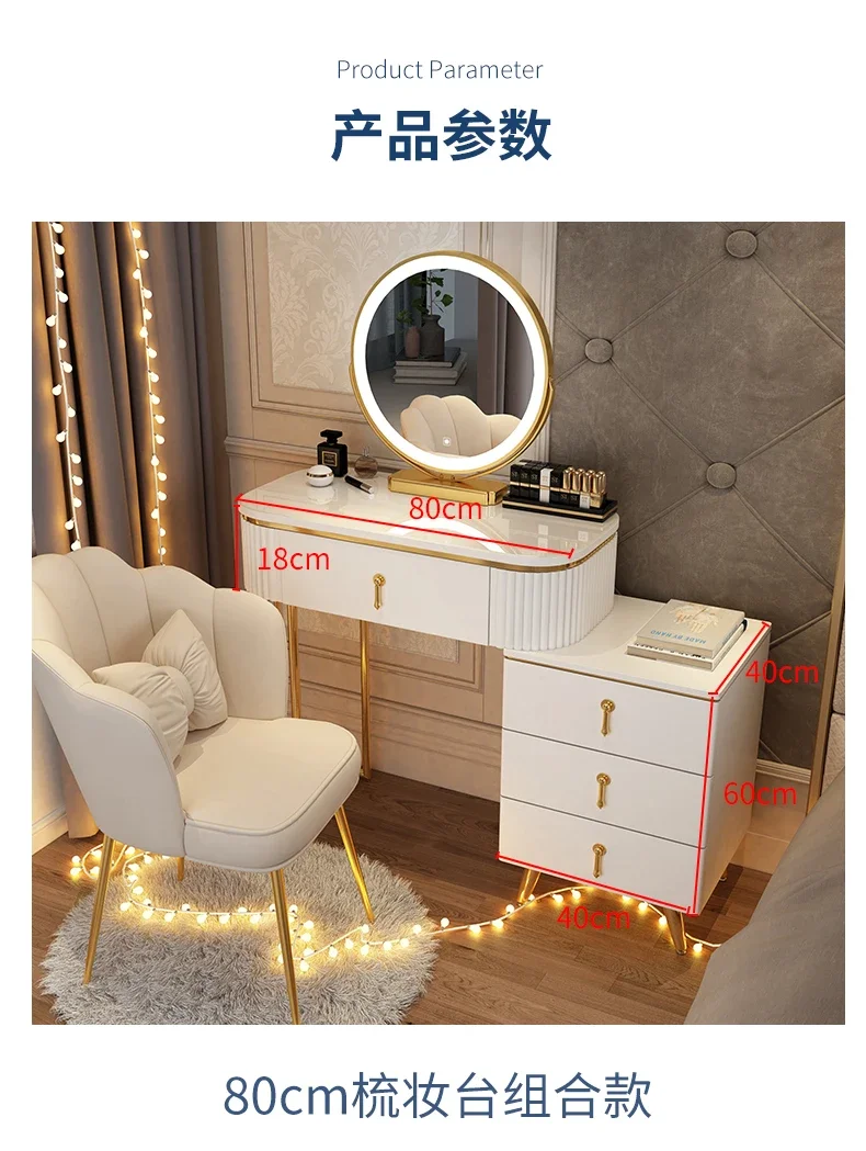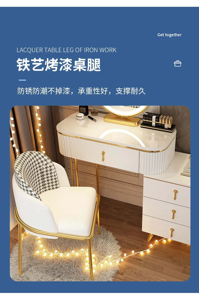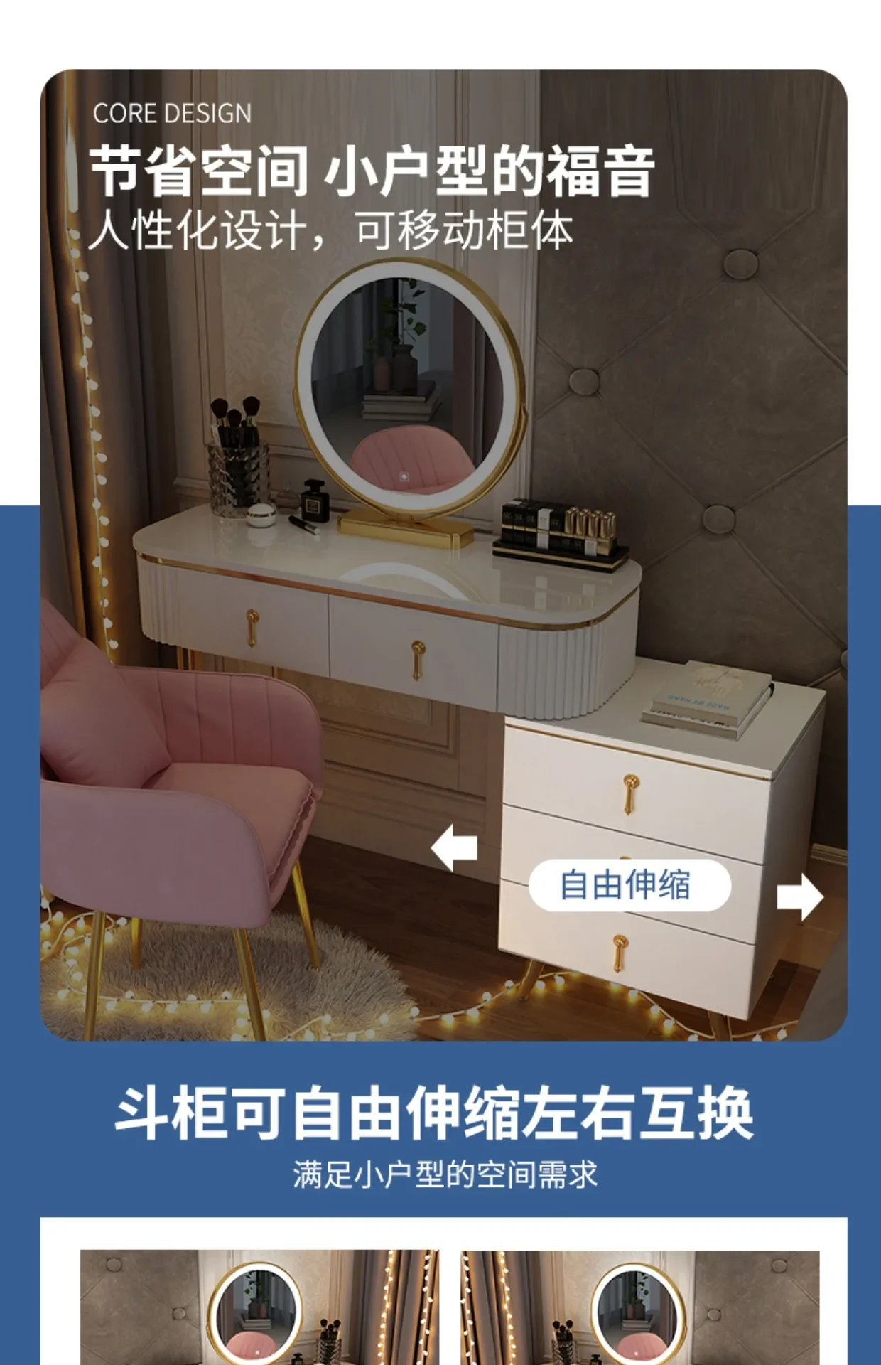 Makeup Vanity Minimalist Dressing Table Led Mirror White Lights Nordic Modern Extension Tables Drawers Meuble Bedroom Furnitures