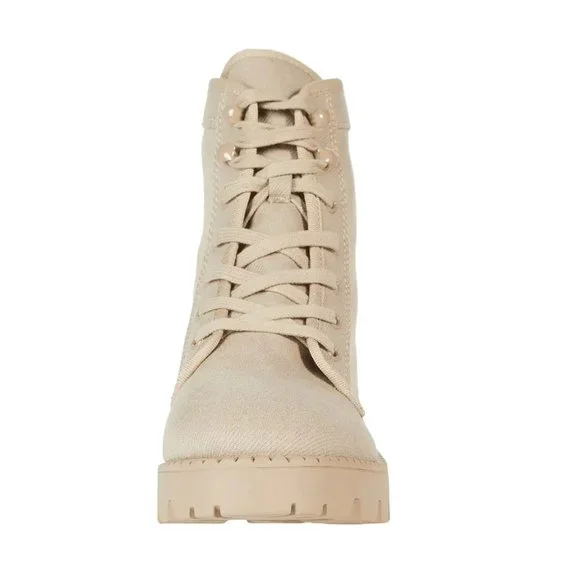 Marc Fisher Fayth Taupe Fabric Hiker Boots - NEW IN BOXThe Marc Fisher LTD™ Fayth offers a rugged hiker style to your chilly weather wardrobe look.Lace-up closure in a round toe silhouette.Textile upper.Man made lining.Man made outsole.