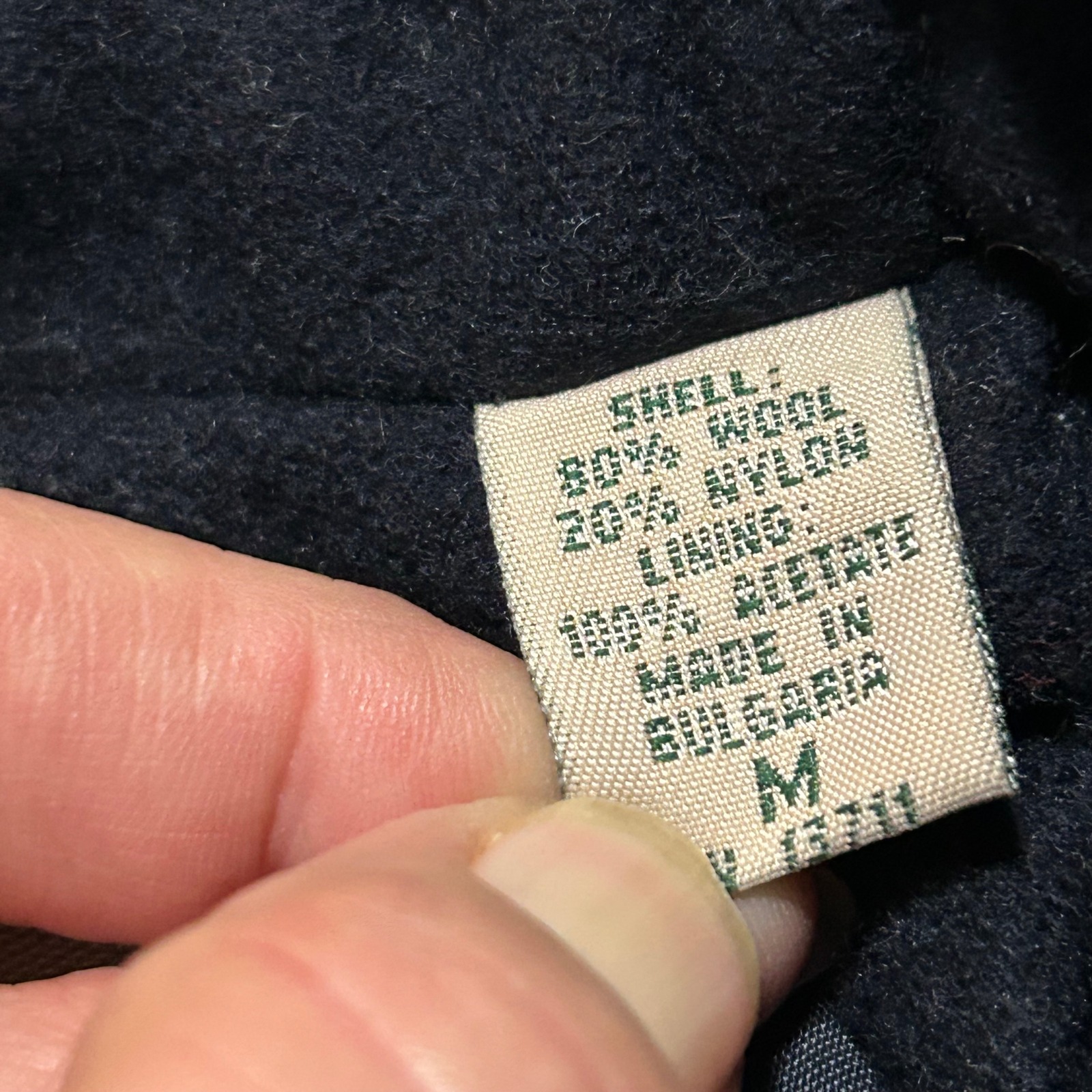 Envelop yourself in the timeless charm of this vintage pea coat, an emblem of sophisticated outerwear. The jacket boasts a classic double-breasted design, accented with intricately detailed buttons that add a touch of elegance. The structured silhouette creates a flattering fit, while the notched lapel offers a versatile neckline suitable for both casual and formal wear. The high-quality construction ensures durability and warmth, making it a reliable addition to your wardrobe for years to come. Envision wearing this coat to a brisk autumn stroll, a sophisticated dinner date, or an important business meeting.