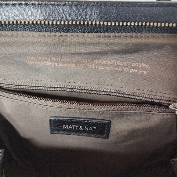 Matt and Nat faux leather doctor bag with crossbody strap included! Minor crease on front from storage but should fade out. on crossbody strap where it goes over shoulder there feels to be possible cracking although it can't be seen- only felt with fingers but wanted to disclose. Tried to photograph so please see all photos. Otherwise excellent condition! Please reach out with any questions!