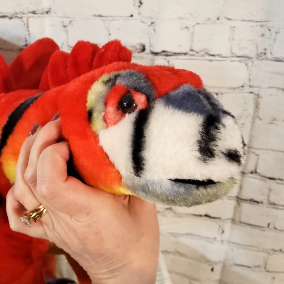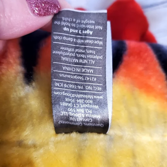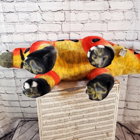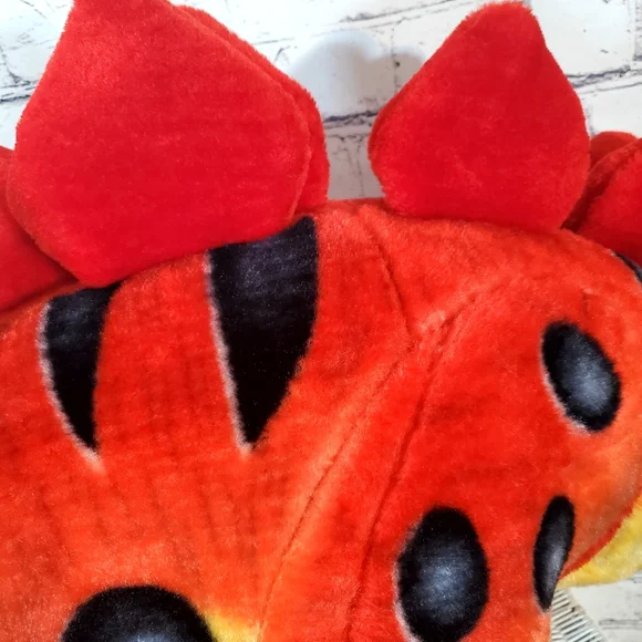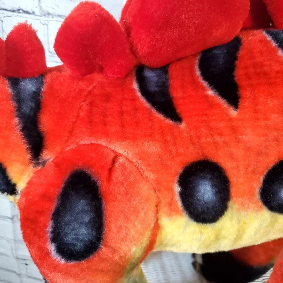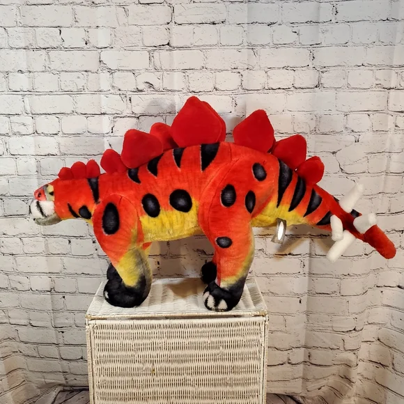 This Melissa & Doug stuffed animal is a giant red, yellow, and black Stegosaurus dinosaur that is sure to impress any dinosaur lover. Measuring at a large size of 24-36 inches, it is perfect for children aged 3-11 years old. Made in China, this high-quality toy is sure to provide hours of fun and imaginative play. The brand Melissa & Doug is known for creating durable and well-made toys that are sure to last.The mighty Stegosaurus, with its signature shield-like plates on its back, will lumber its way into young dinosaur lovers’ hearts! The boldly colored red, black, and yellow Stegosaurus is soft and squeezable, while sturdy, quality construction and a strong interior structure to keep it standing proudly means it will hold up to years of hugs and snuggling. This dynamic dino is an impressive, prehistoric pal that will spark the imagination, promote creative play, and is sure to be a beloved member of any child’s menagerie.See photos for measurements Excellent Pre-Loved Condition No Flaws Smoke Free Home Fast Shipping R6 Hook 2