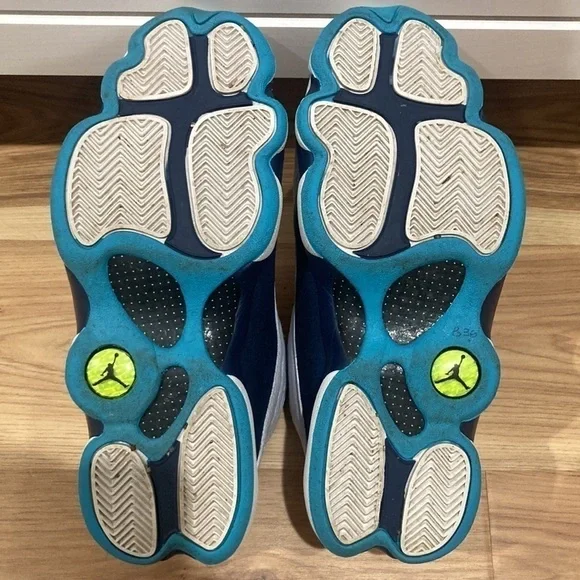 The Air Jordan 13 Low ‘Hornets’ pays tribute to the NBA franchise that’s now immediately associated with the basketball great. The low-top sports a synthetic suede base in Midnight Navy, contrasted by white leather overlays and a metallic silver Jumpman on the lateral heel. It all rides on a signature panther paw outsole in turquoise.