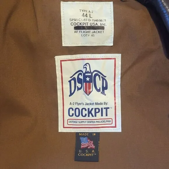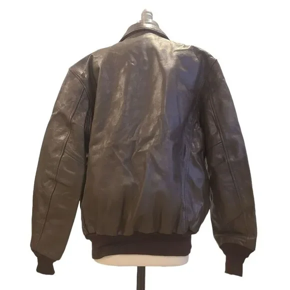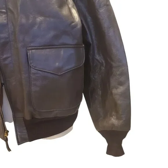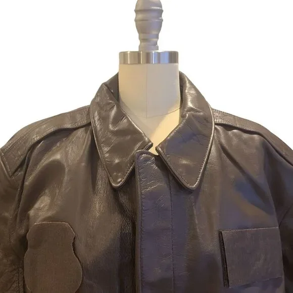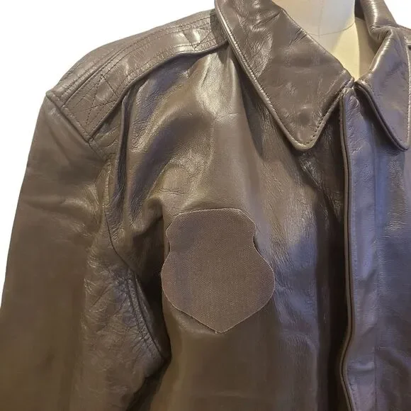 Good pre-owned condition. Leather is in execllent condition.Knit cuffs and hem recover nicely. Zipper and snap in good working condition.This is a reproduction.This is a heavy, substantial, high quality jacket made in the USA.Velcro patches on the chest are intact.Please review the measurements carefully as vintage measurements don't always correspond to modern sizing.Approximate flat measurementsShoulder to shoulder 21"Pit to pit 25"Length 29.5"Arm Length 27"Please review all photos for condition and measurements as I do not accept returns.