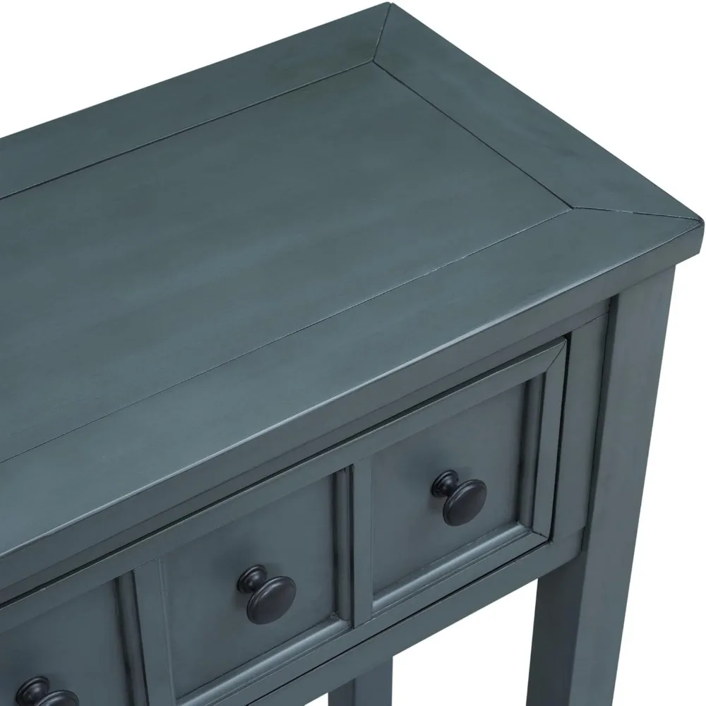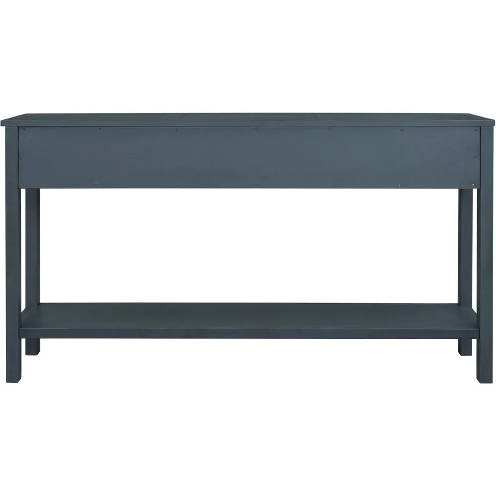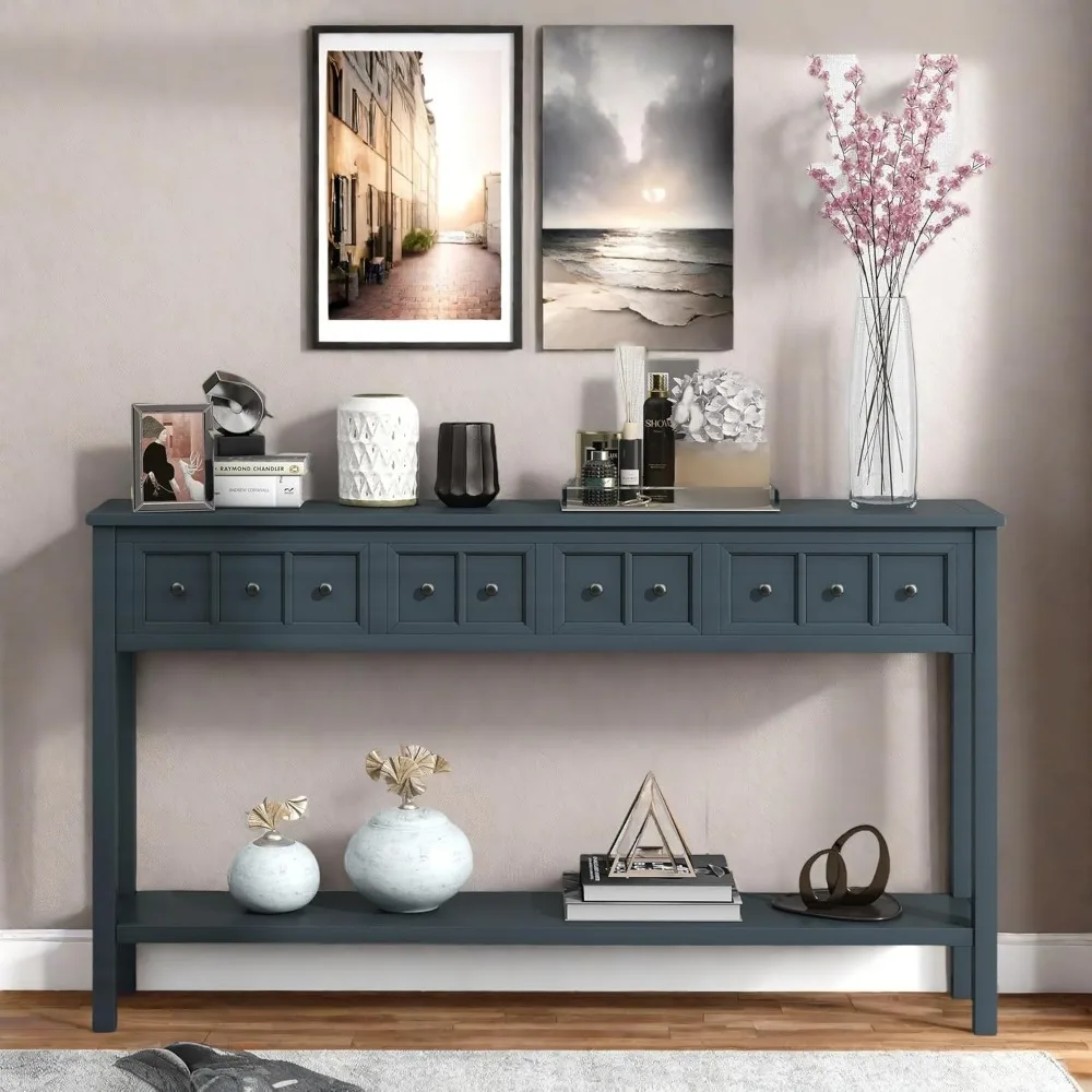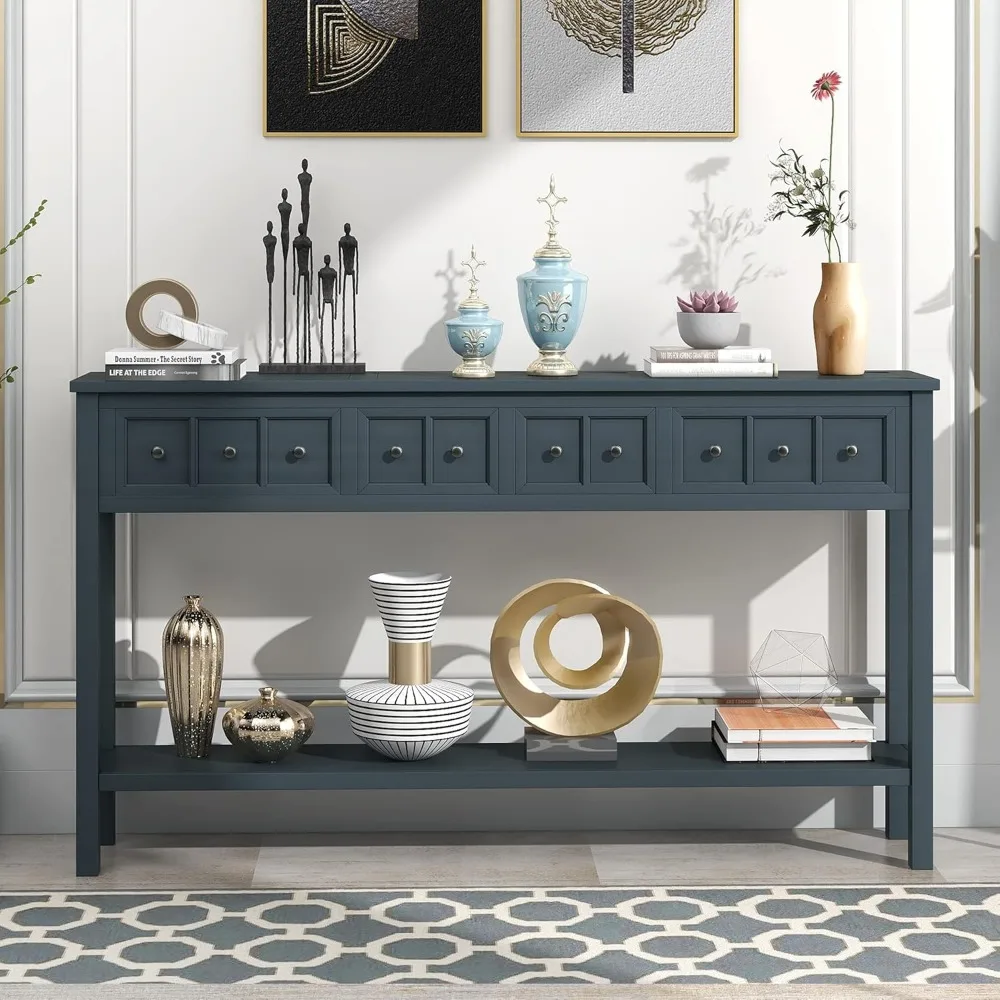 Merax Long Farmhouse Entryway Table with Storage Drawers and Bottom Shelf, Sofa Console Table for Living Room Hallway, Navy Blue